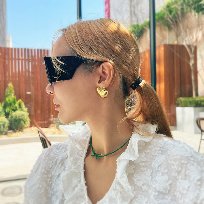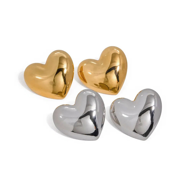 빅 하트 골드 실버 볼드 써지컬 귀걸이