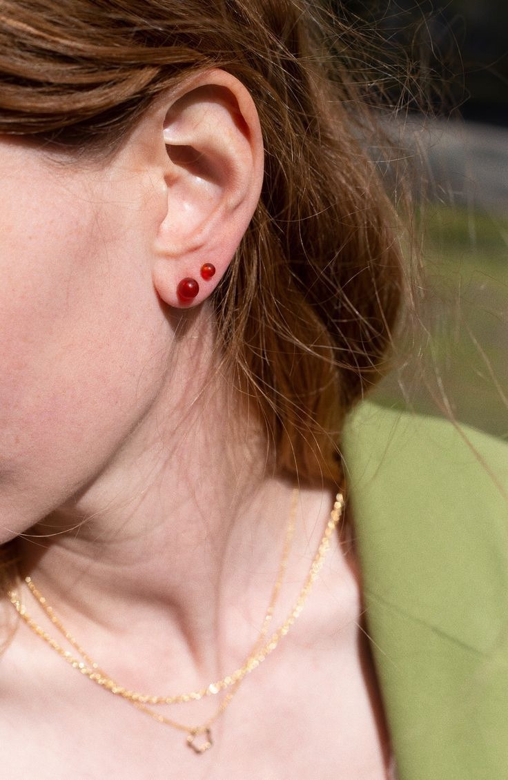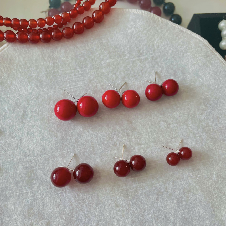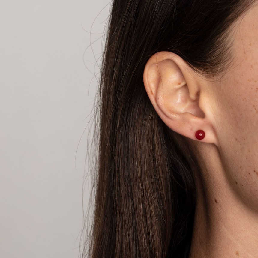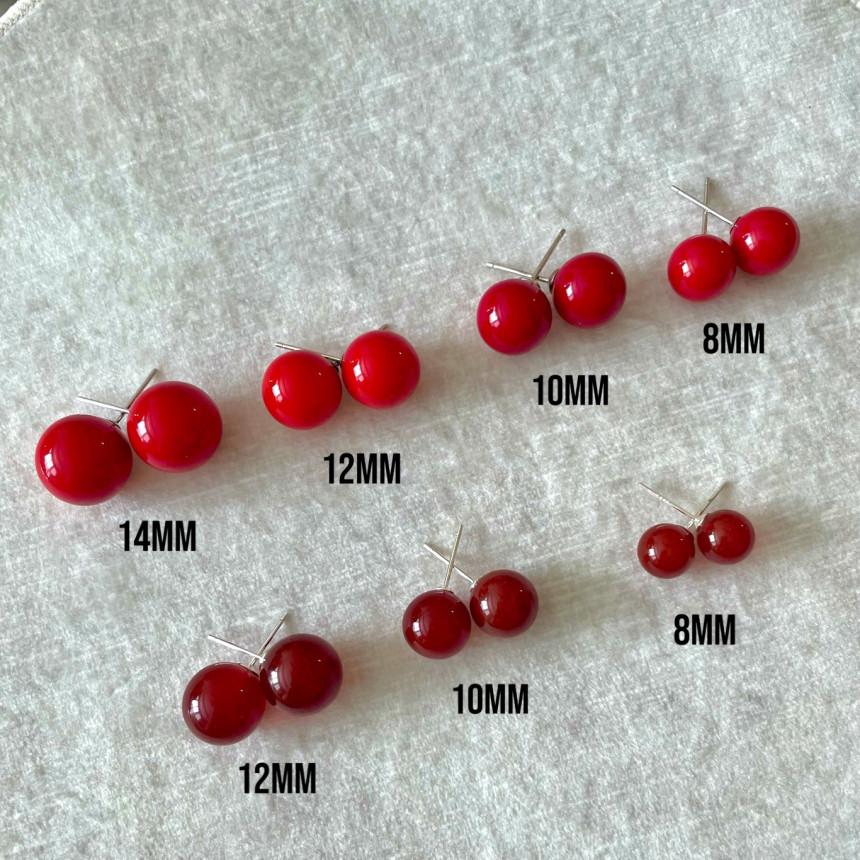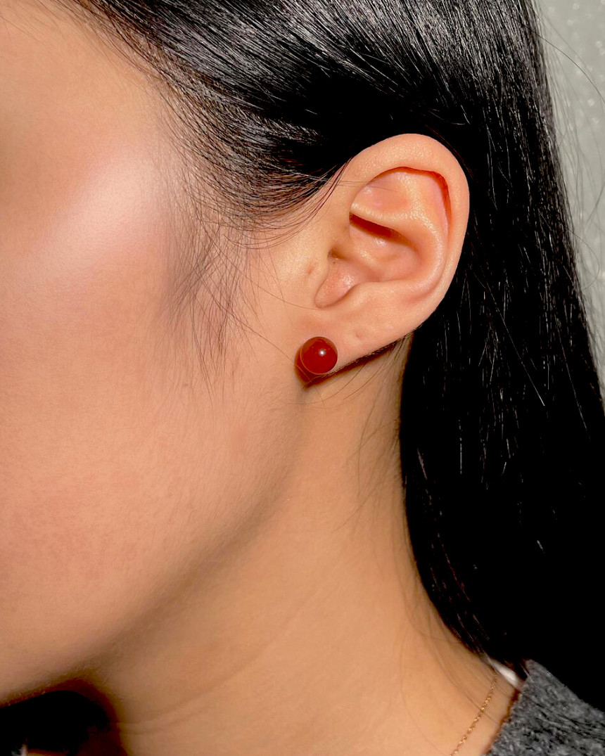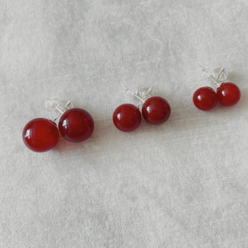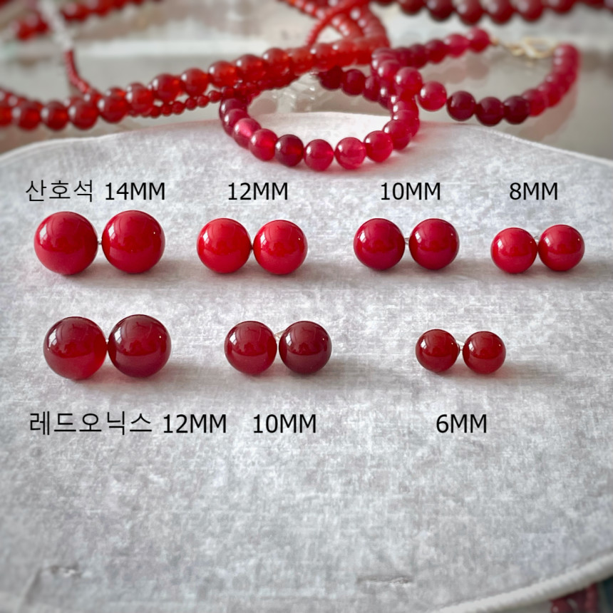 925s 레드 마노 오닉스 산호 스터드 귀걸이