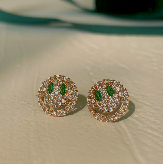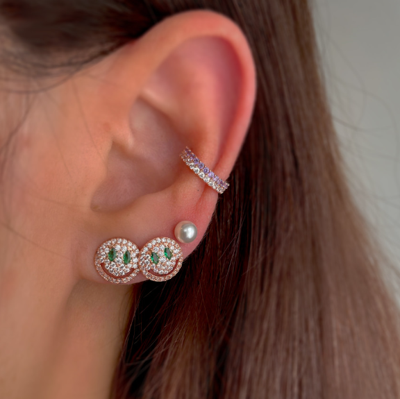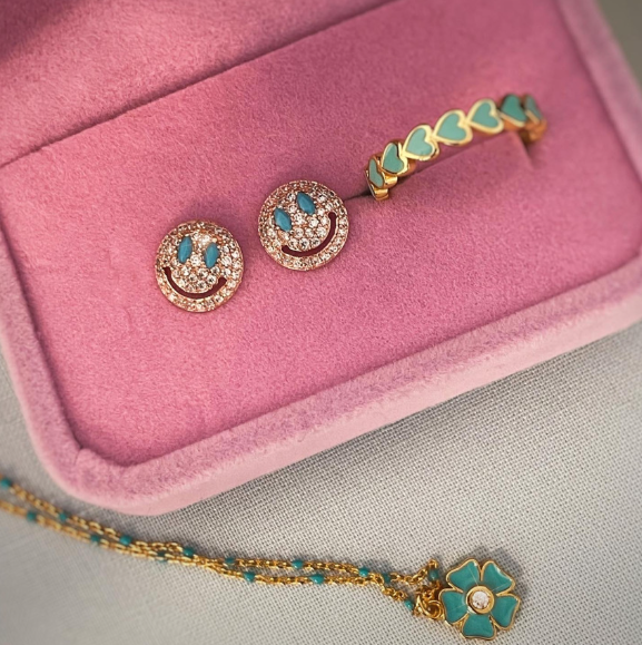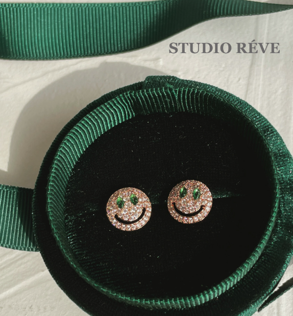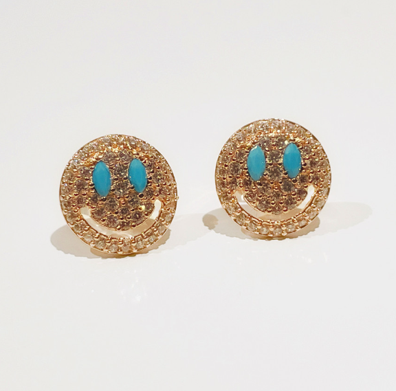 귀여운 스마일 디자인에 지르코니아가 파베 세팅된 이어링입니다. 지르코니아와 터키석, 오닉스가 세팅되어 무니켈 도금에 코팅처리를 한 번 더 했습니다. 유니크하면서 고급스러운 데일리 아이템으로 사용하시기 좋은 사이즈입니다.