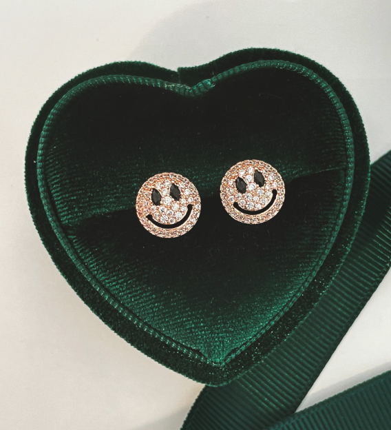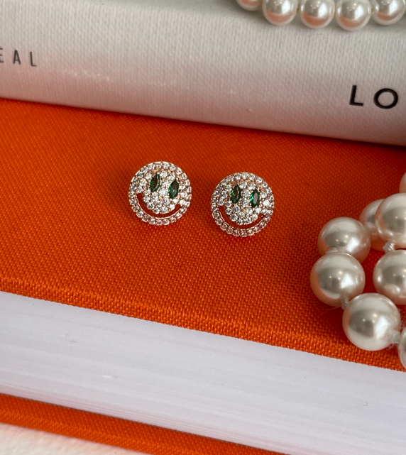 스마일 컬러 크리스탈 큐빅 스터드 귀걸이 3Color