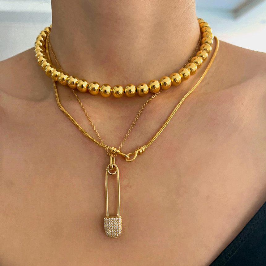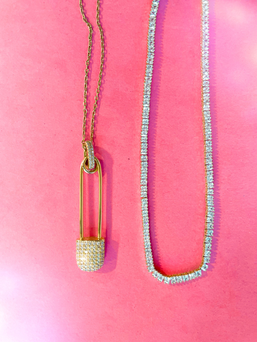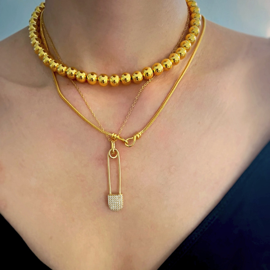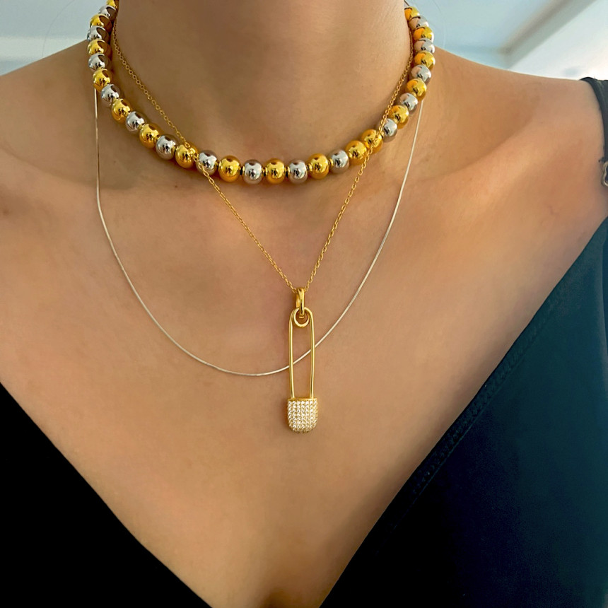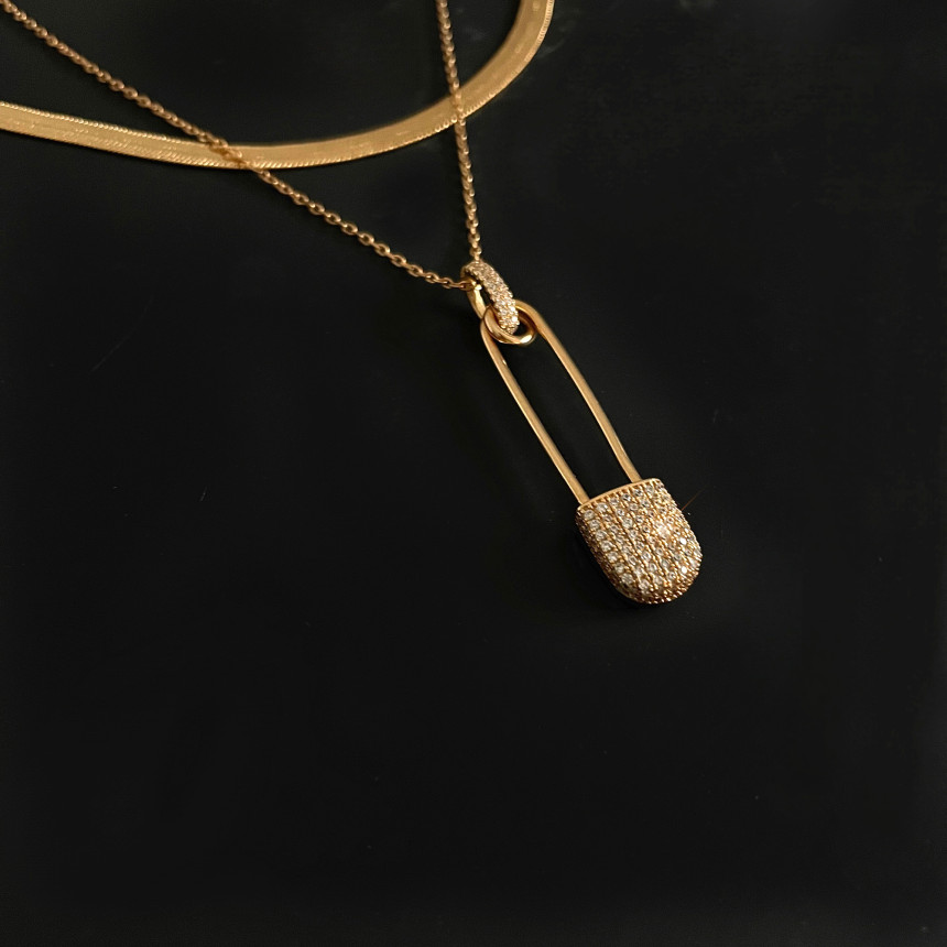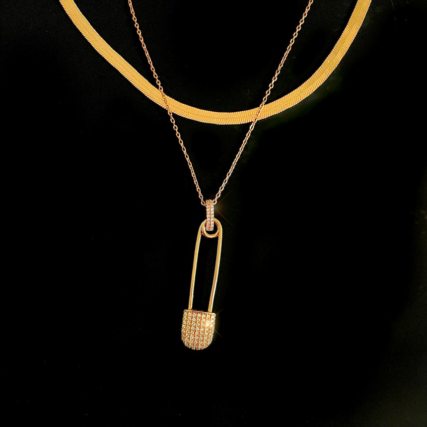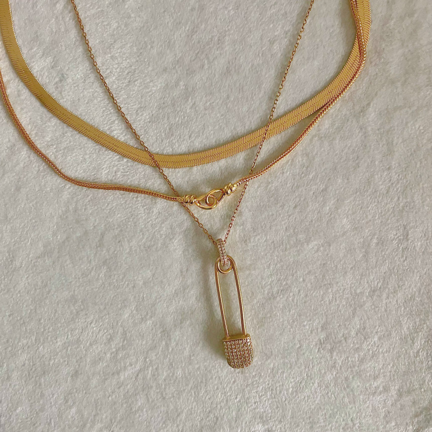 925S 핀업 옷핀 펜던트 골드 실버 레이어드 목걸이