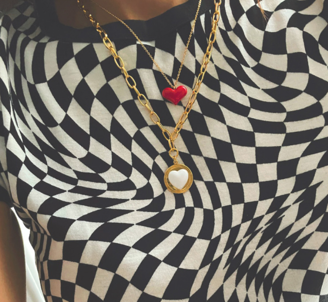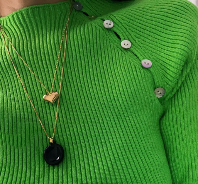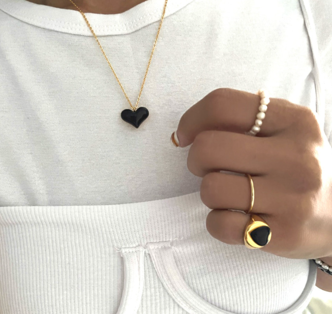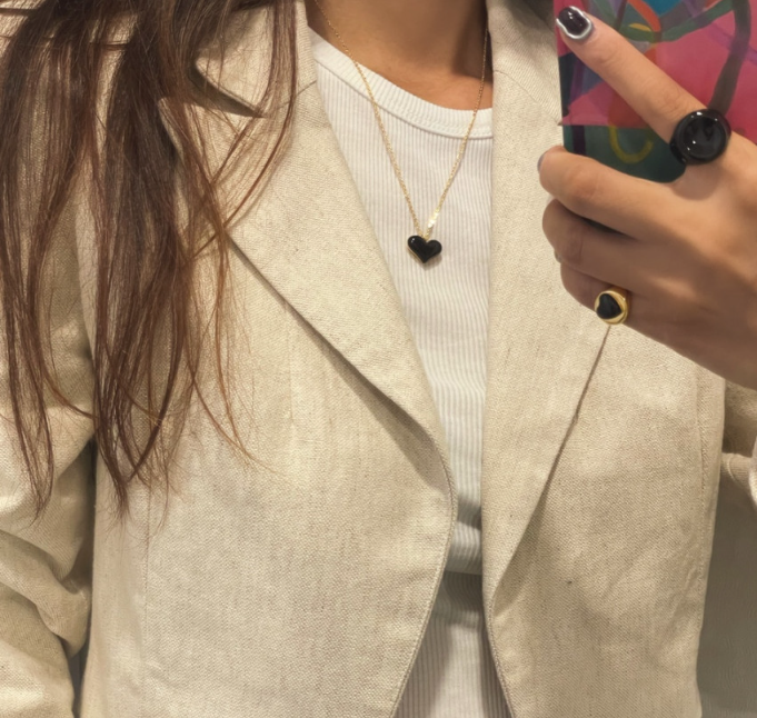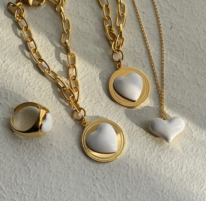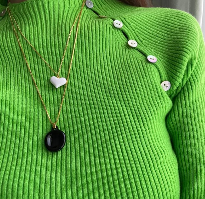 유니크한 디자인의 하트 펜던트 목걸입니다. 입체적인 볼륨감을 가진 통통한 하트 모양에 한 면은 컬러, 한 면은 18k 도금 컬러로 제작했습니다. 잘못 제작하면 유치할 수 있는 디자인인데 옆으로 긴 독특한 느낌의 하트가 심플한듯하면서도 어떤 룩에도 포인트로 착용하시기에 정말 좋습니다. 레브에서 제작한 제품이라 에폭시 컬러, 18k 도금 컬러, 마감까지 어디 하나 빠지는 구석이 없고 정말 잘 나와서 실제로 보시면 만족하실 수 있으십니다.
