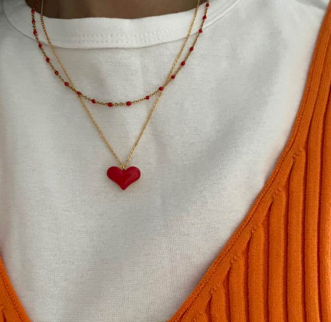 Color Structure Heart Necklace 컬러 입체 하트 목걸이