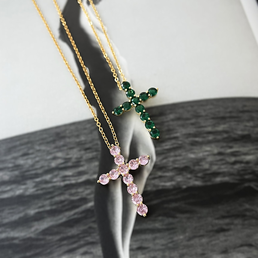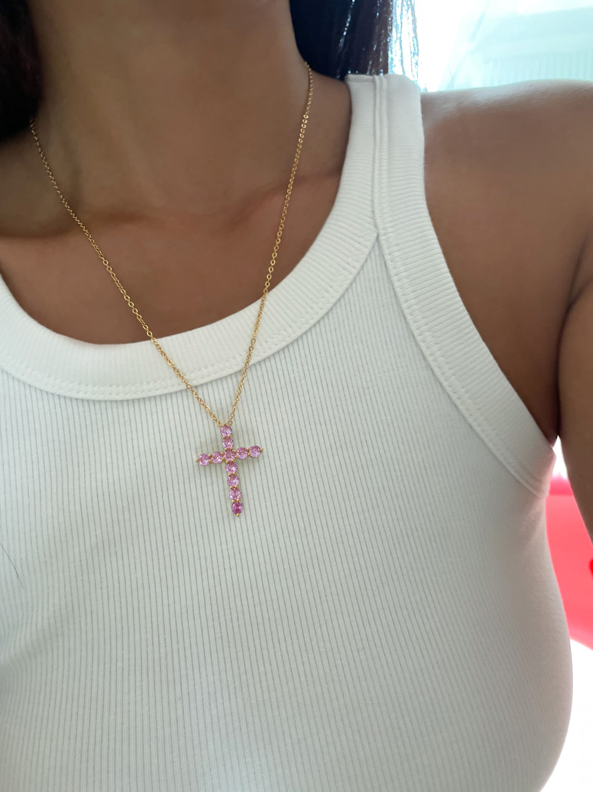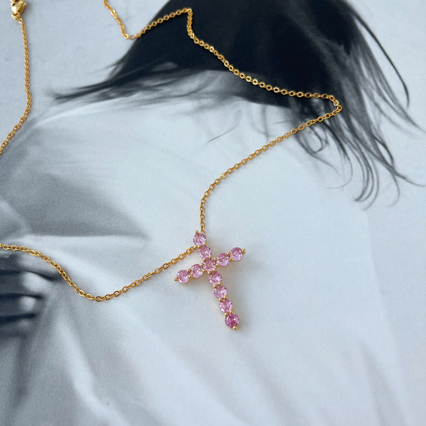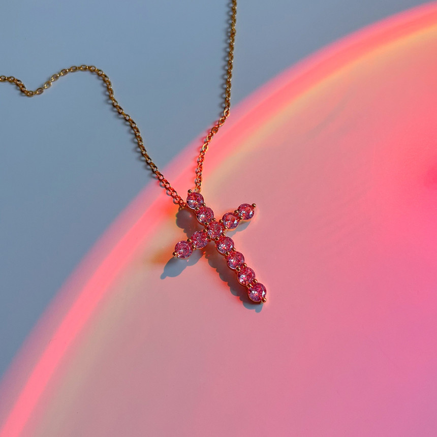Pink Cross Necklace 핑크 크로스 십자가 목걸이