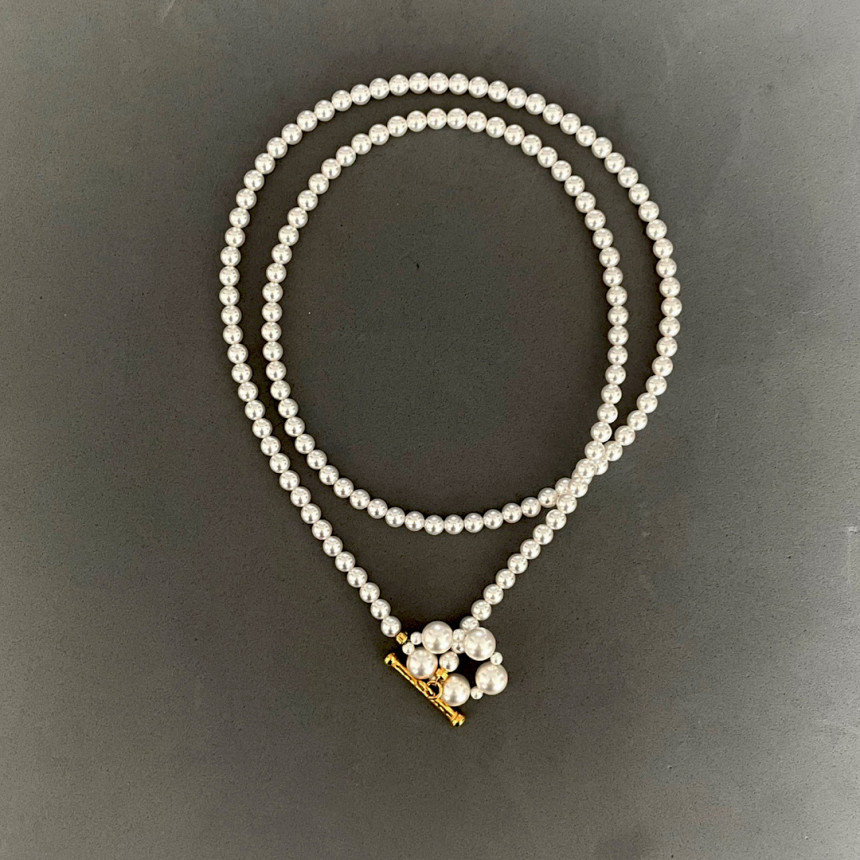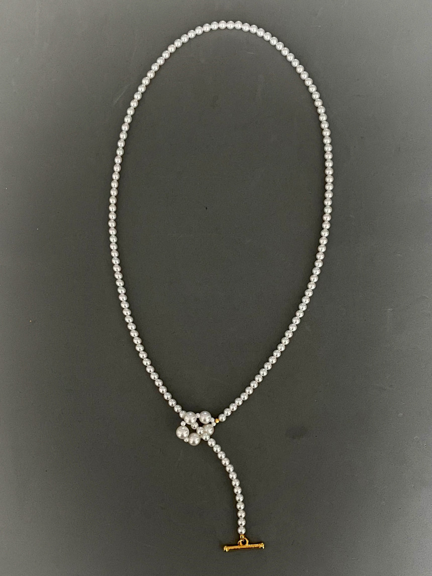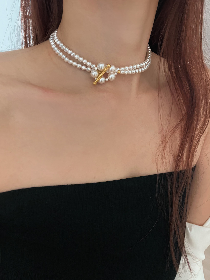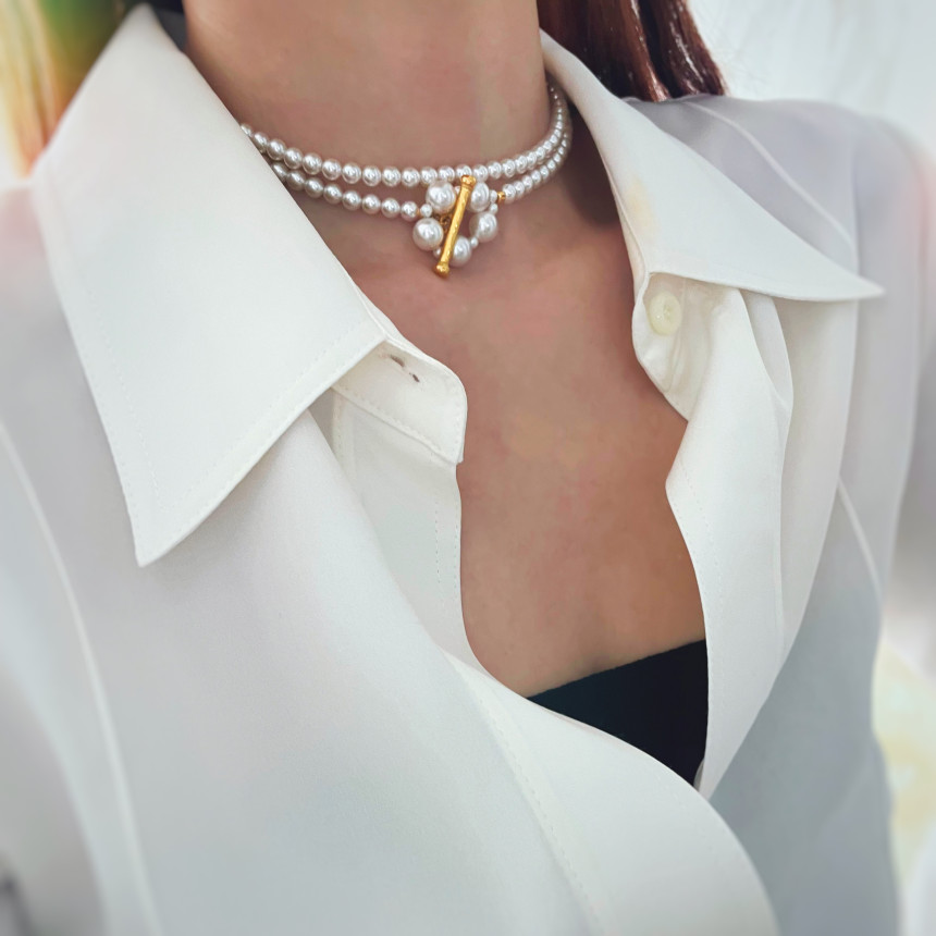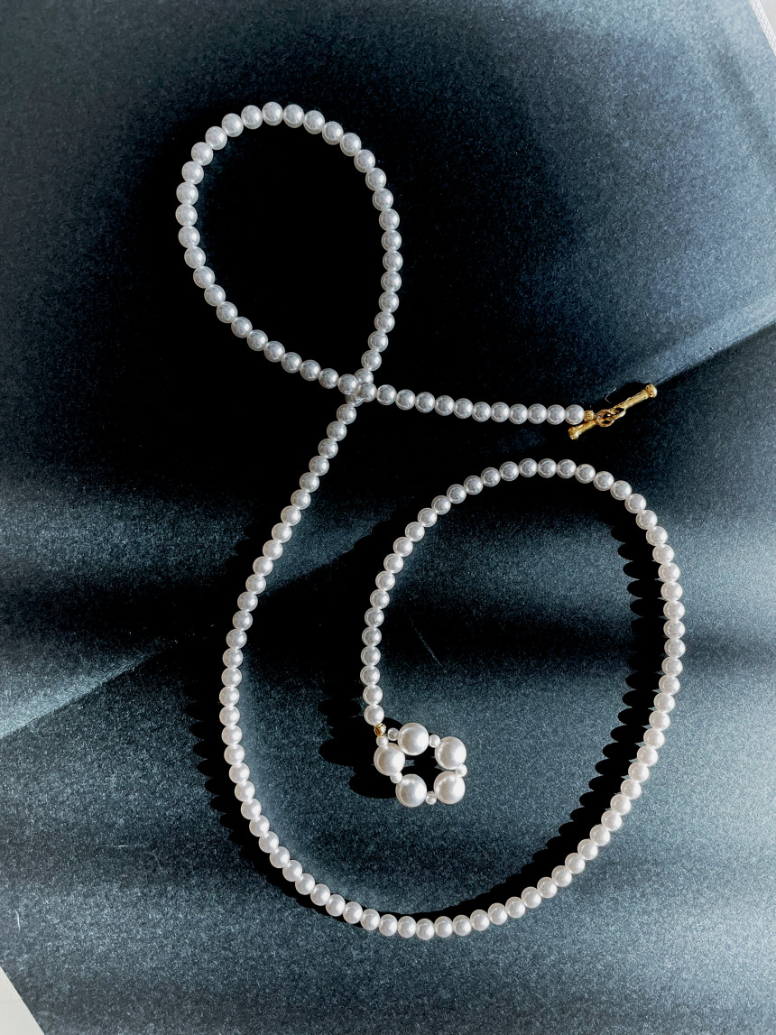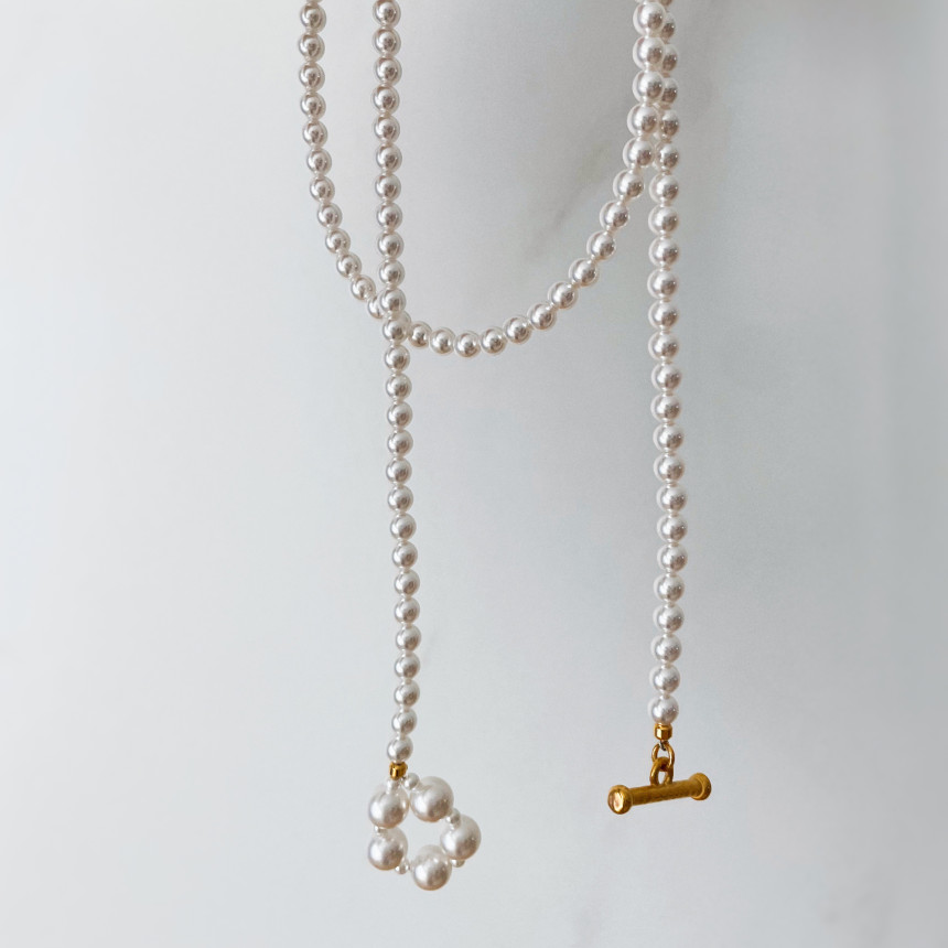 쁘띠 플라워 토글 스와로브스키 진주 초커 롱 목걸이