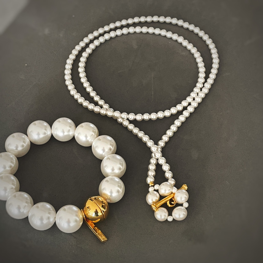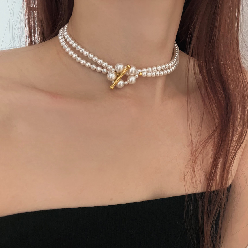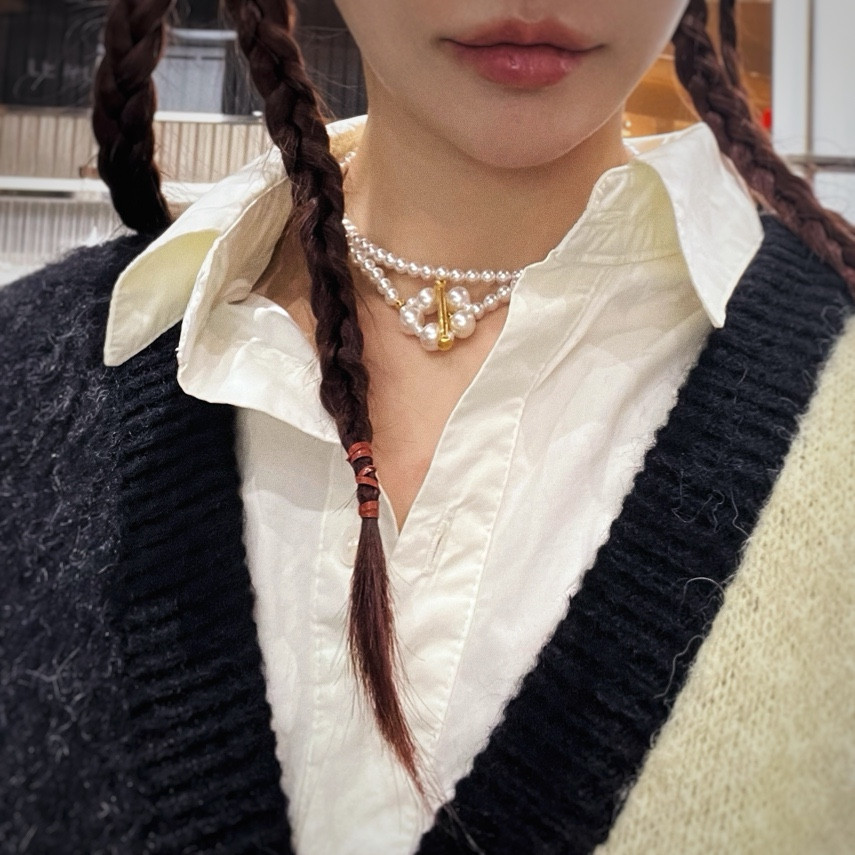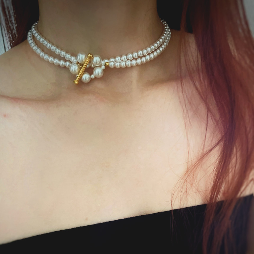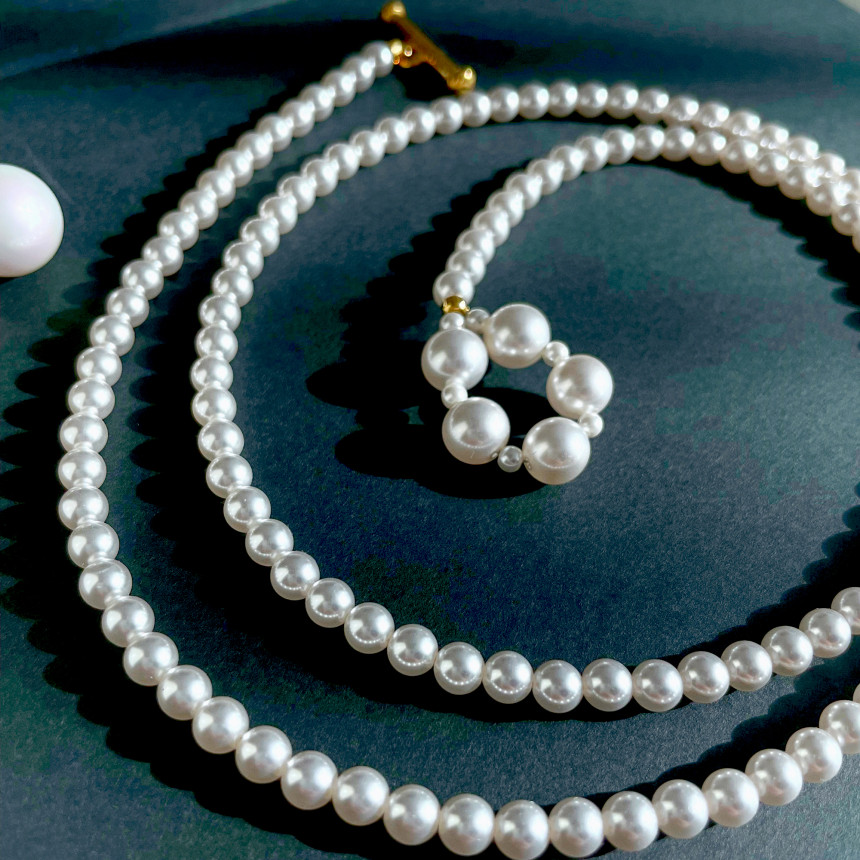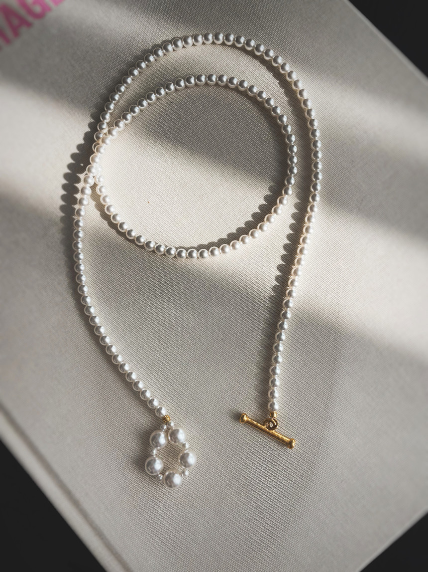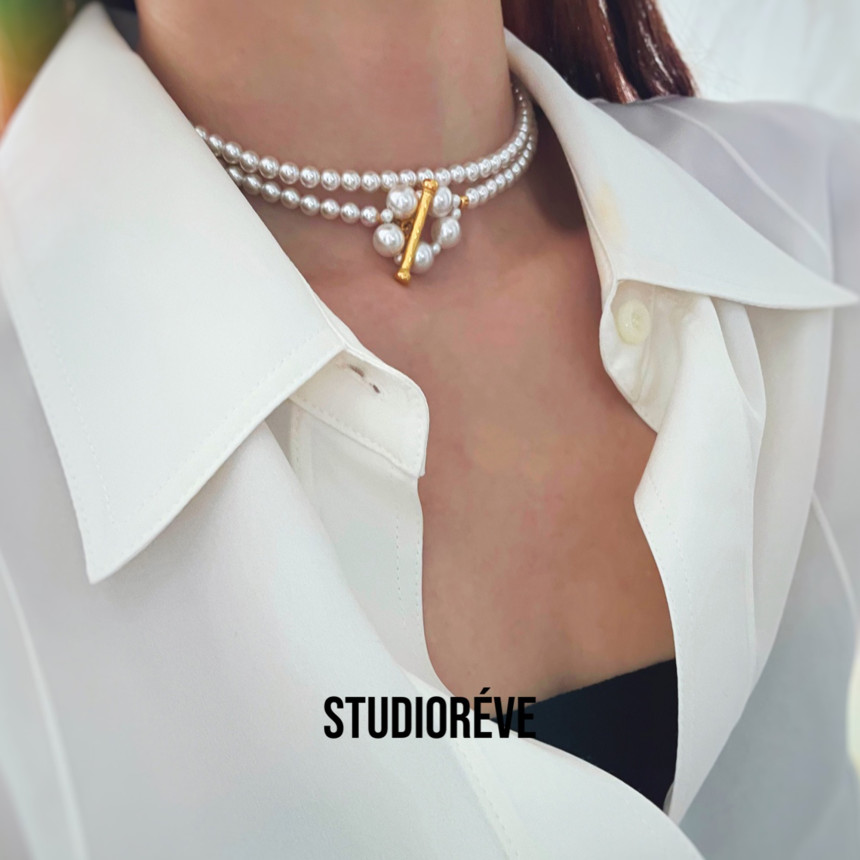 쁘띠 플라워 토글 스와로브스키 진주 초커 롱 목걸이