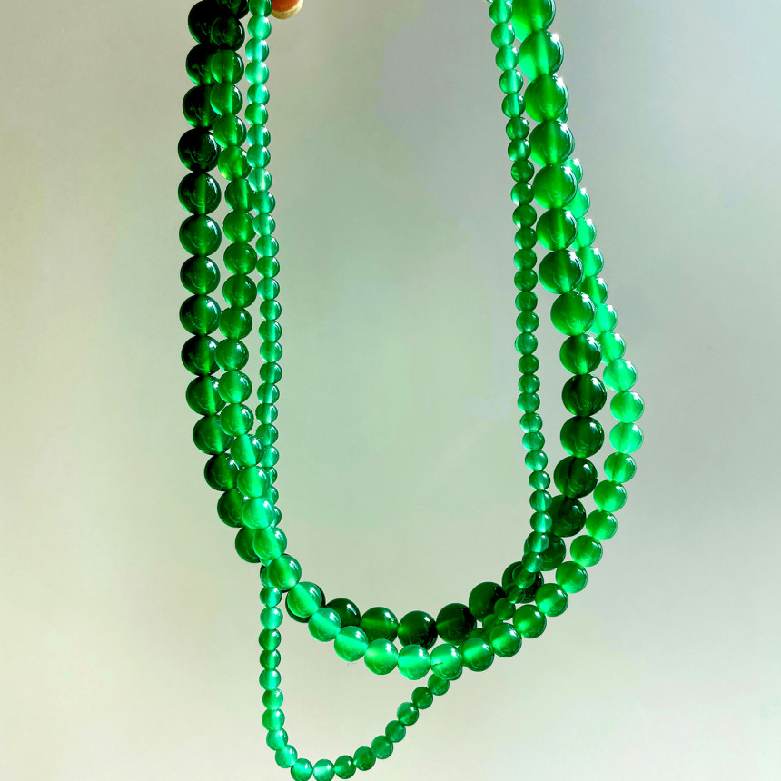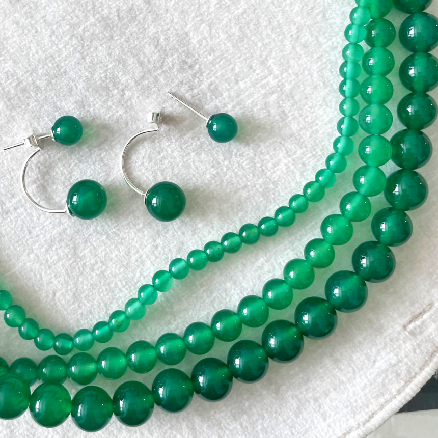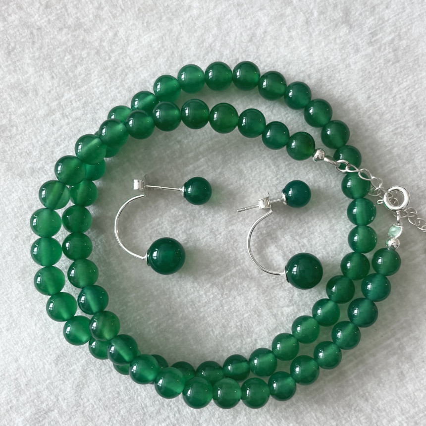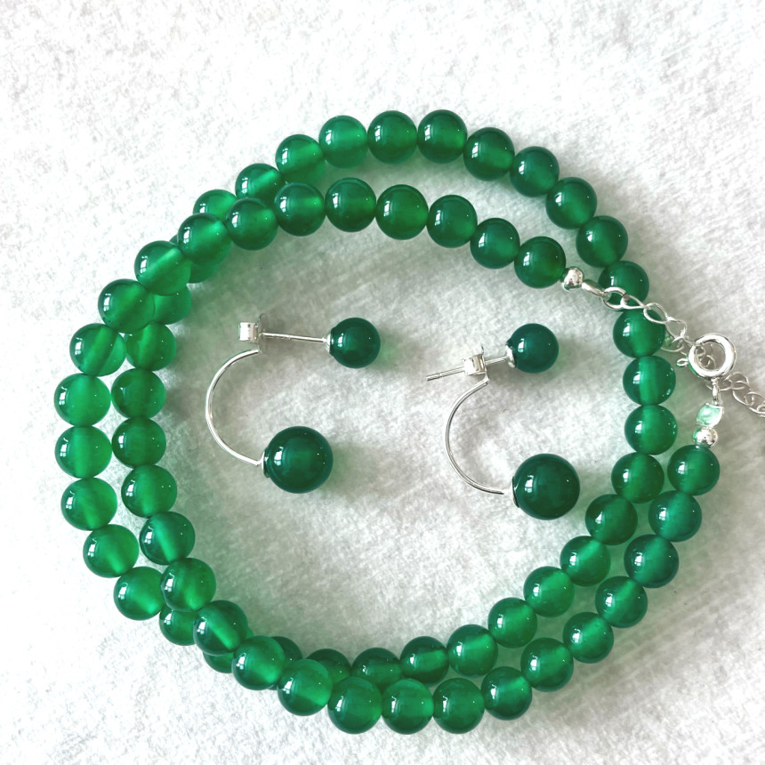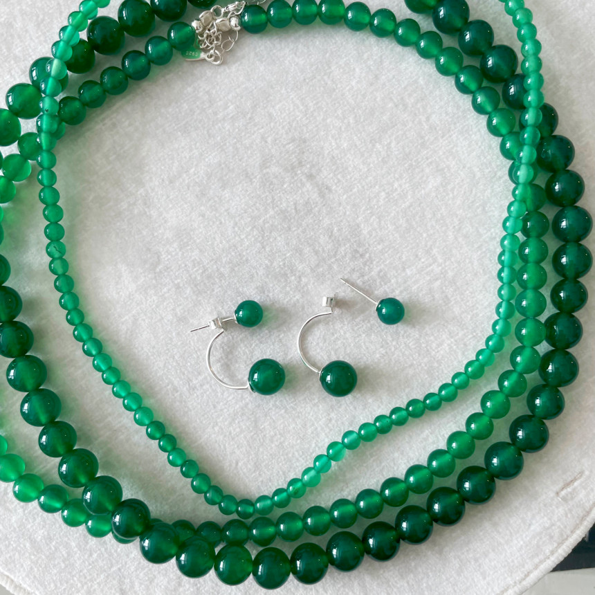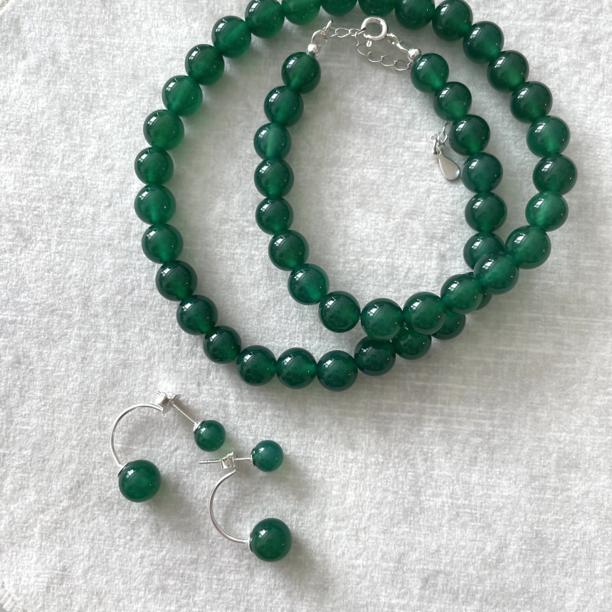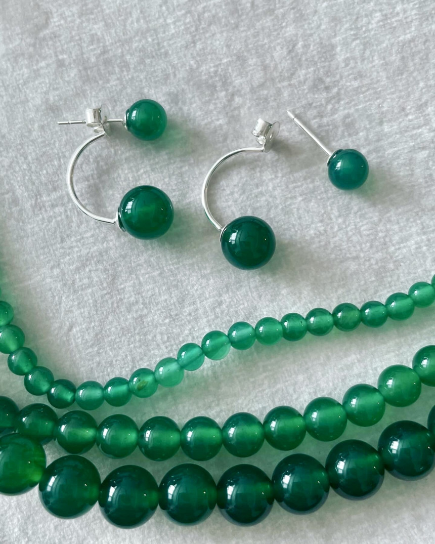 925실버 그린 제이드 오닉스 마노 옥 구슬 볼 목걸이