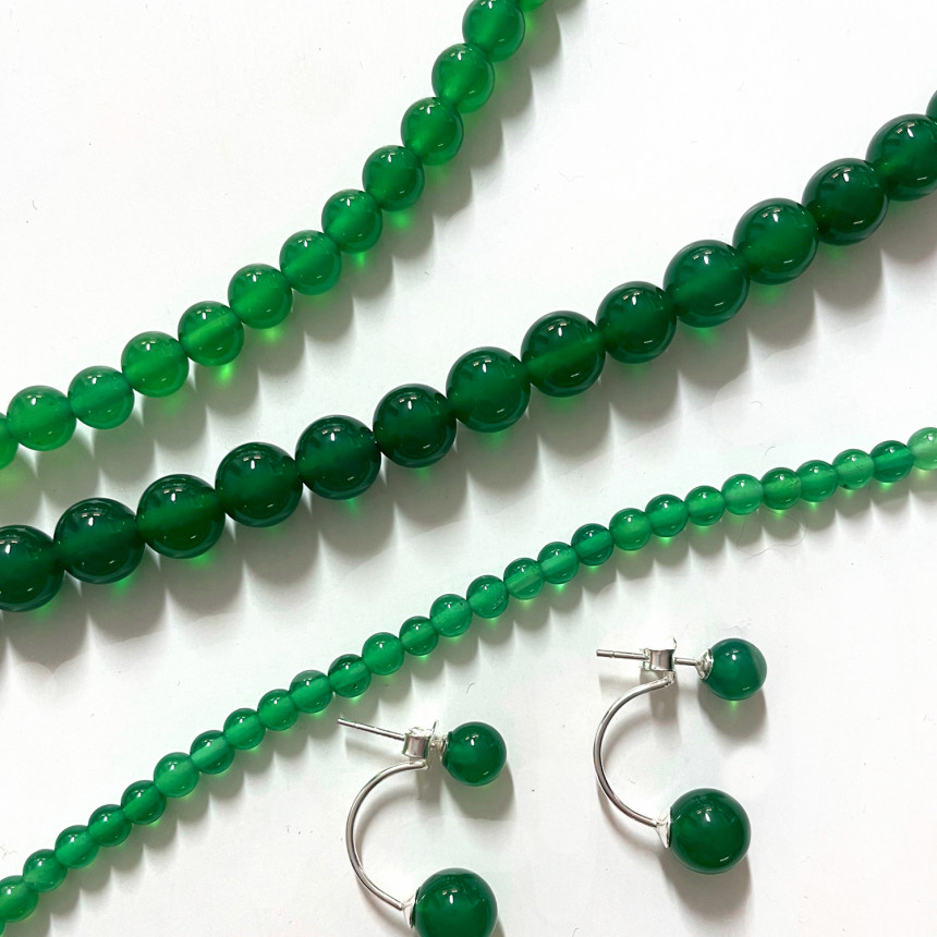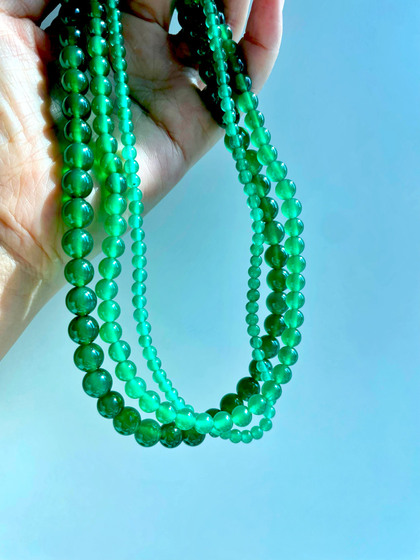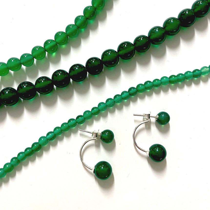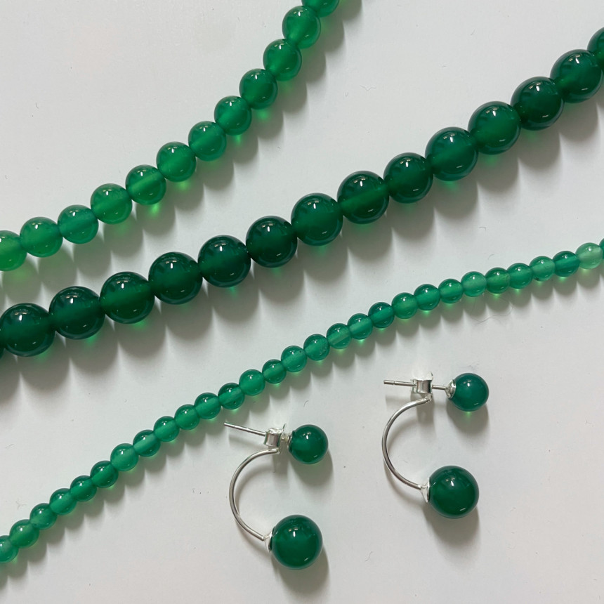 925실버 그린 제이드 오닉스 마노 옥 구슬 볼 목걸이 4MM - 10MM