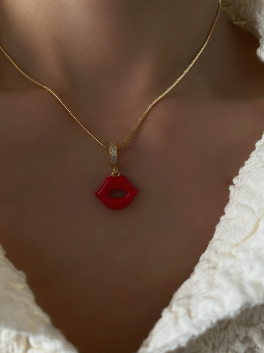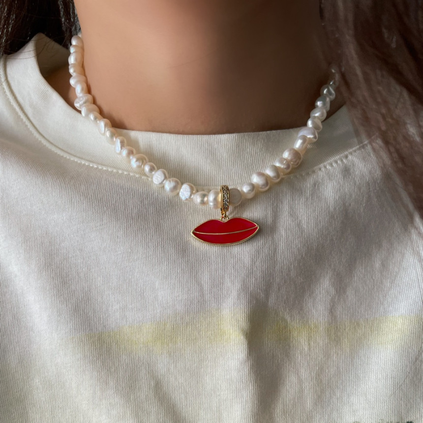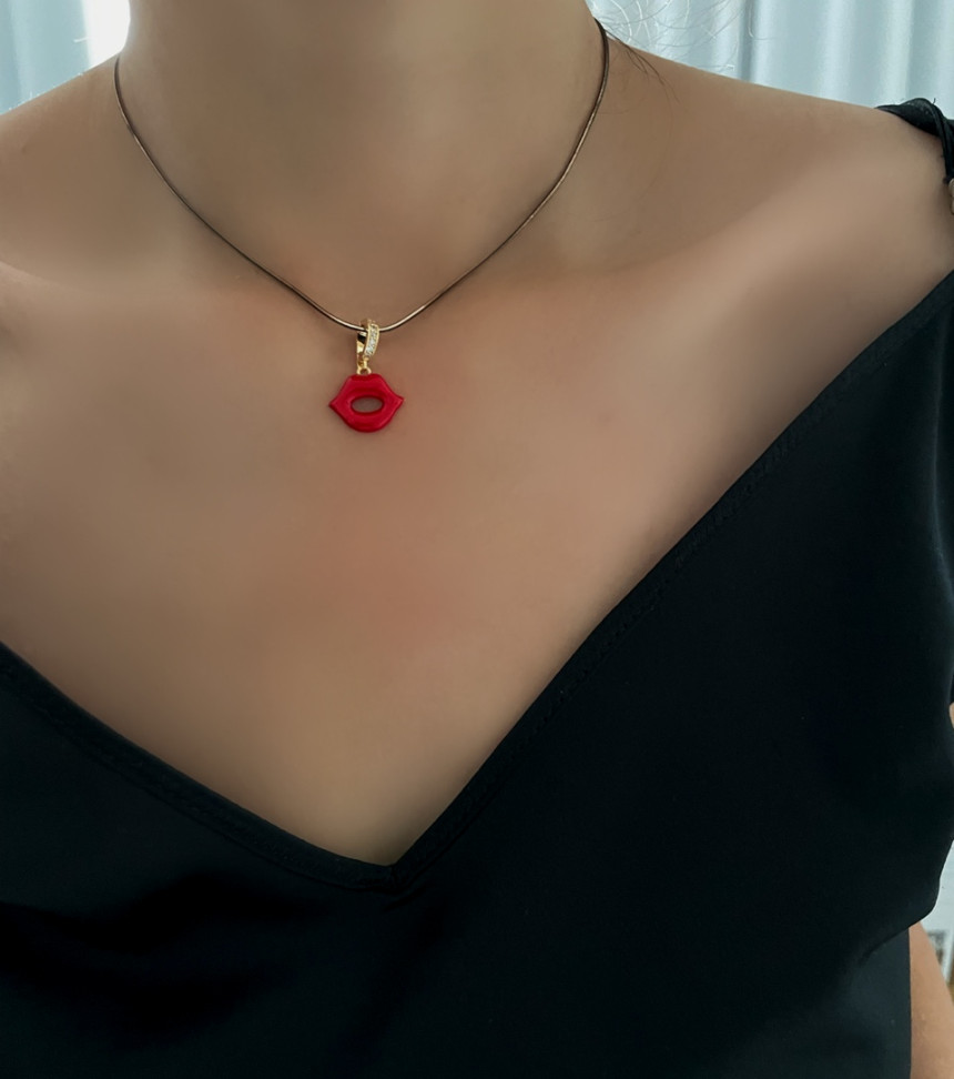 블랙골드투톤 압축체인 / 러브 템테이션 립 팬던트