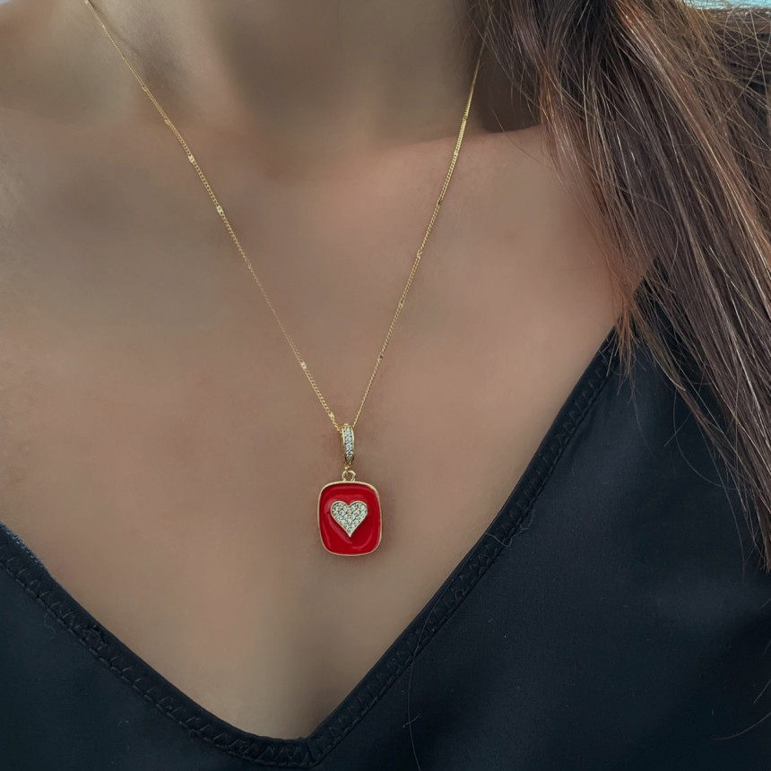 슬림체인 / 스퀘어하트 큐빅 팬던트