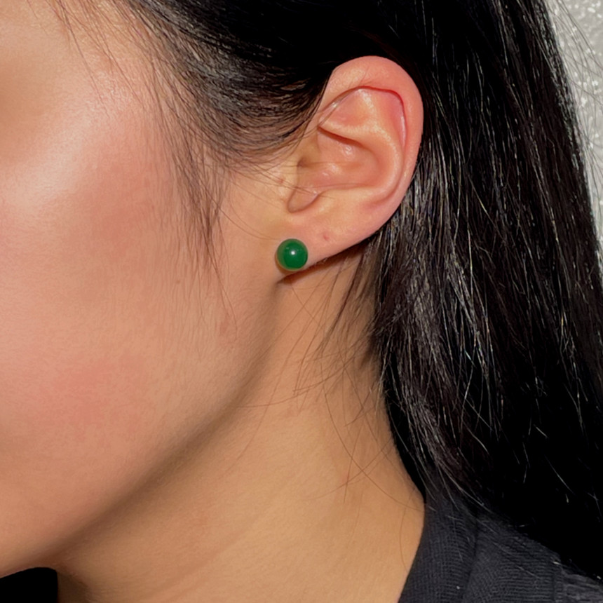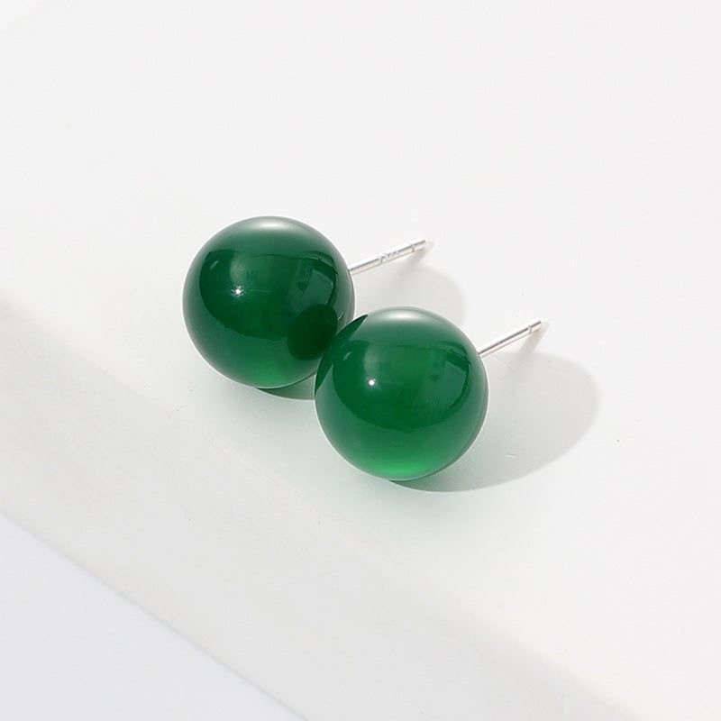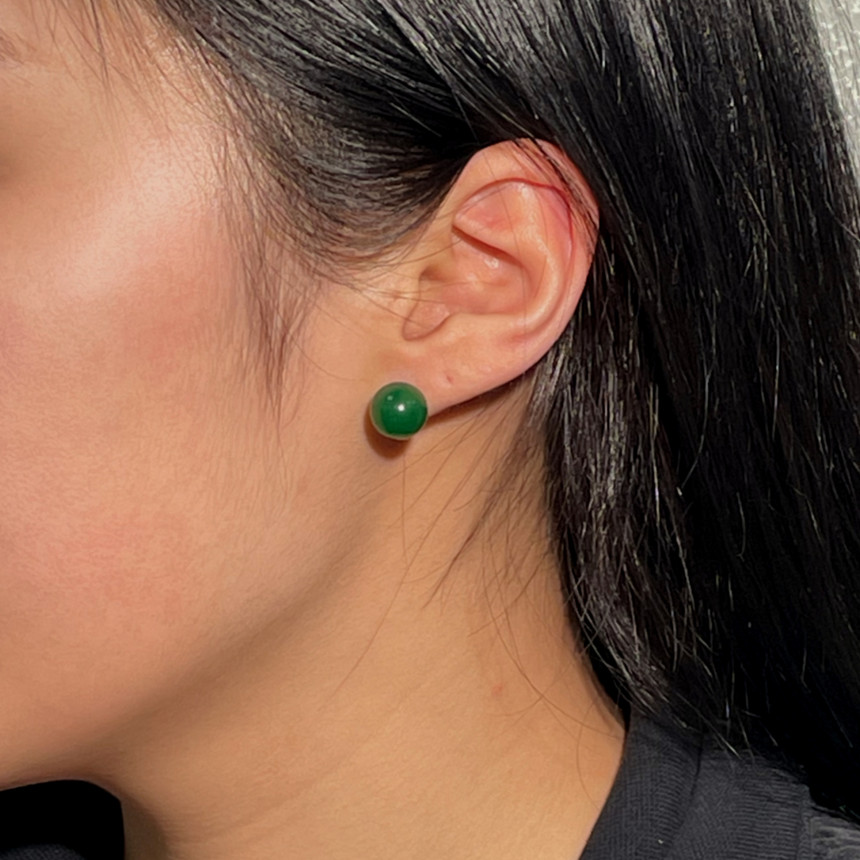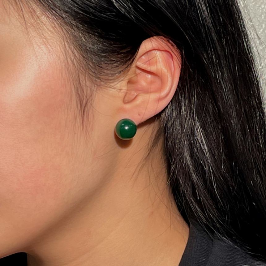 925S실버 그린 오닉스 볼 기본 옥 귀걸이 6MM-12MM