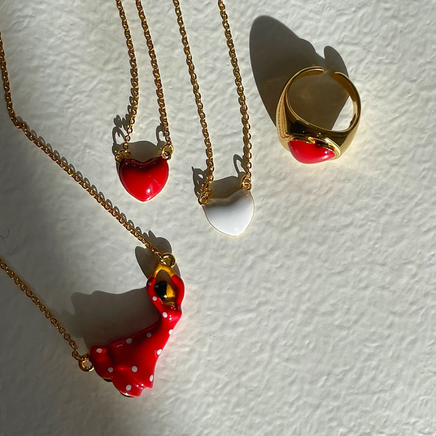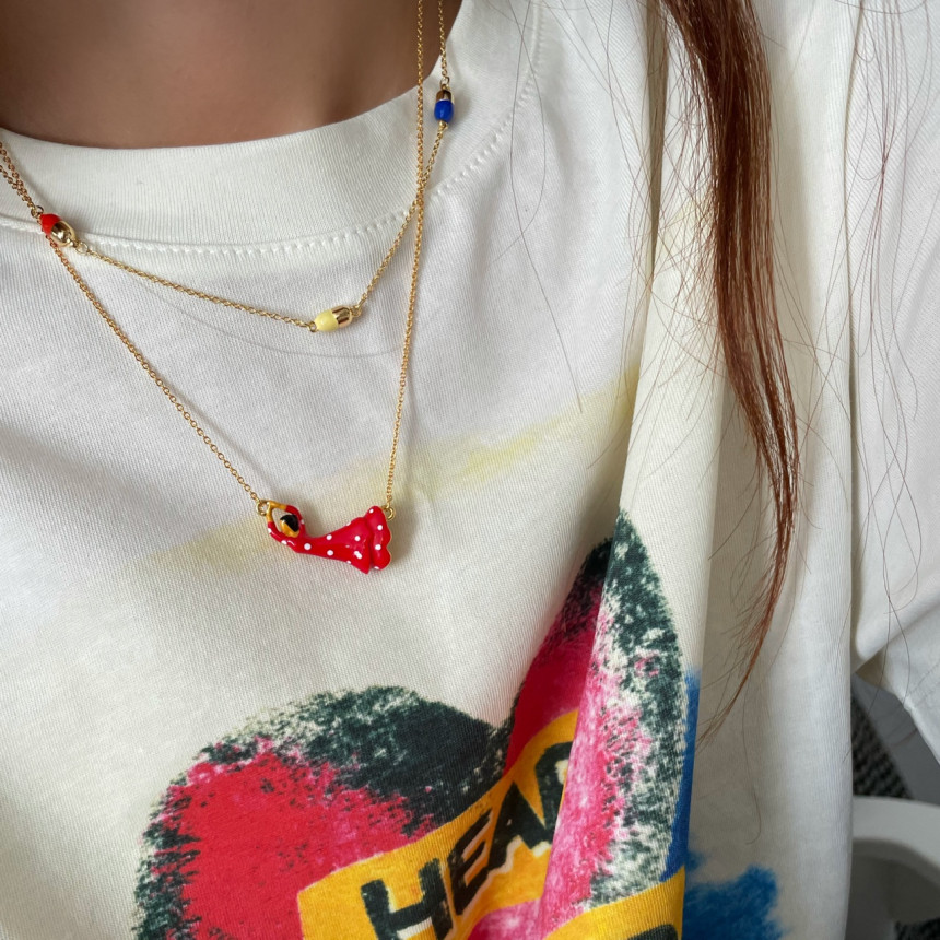 핸드메이드 레드 도트 원피스 댄서 목걸이