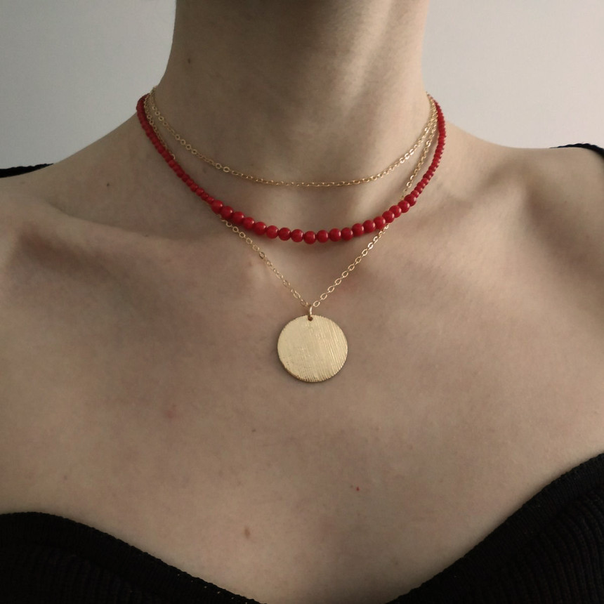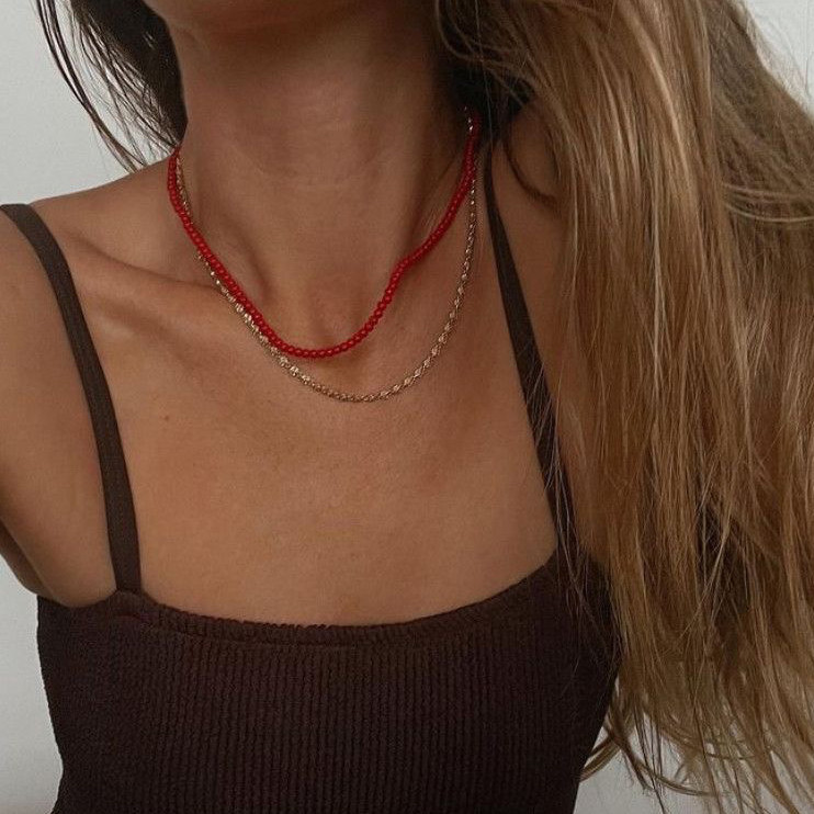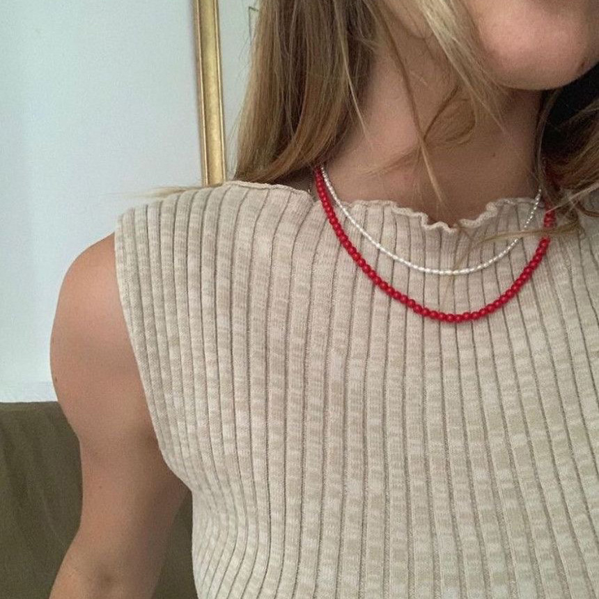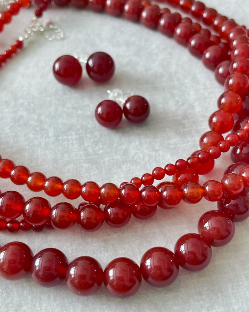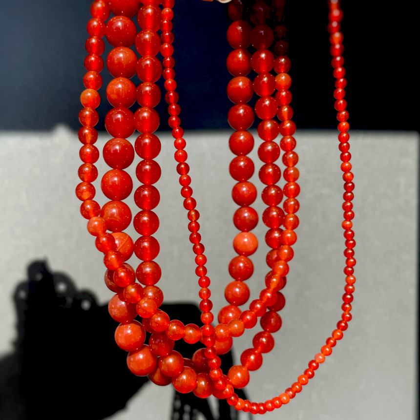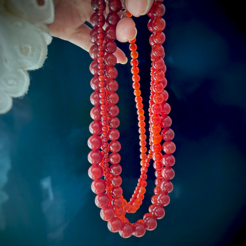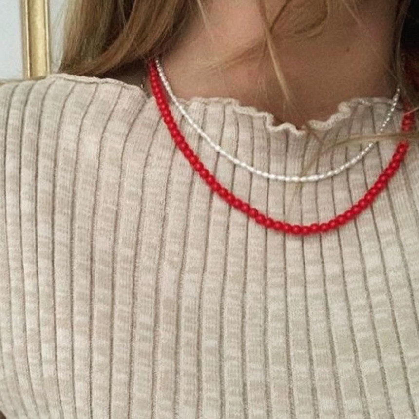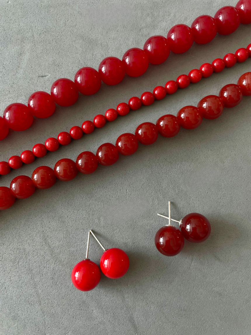 레드 컬러의 오닉스 목걸이와 천연 산호 목걸이 입니다.