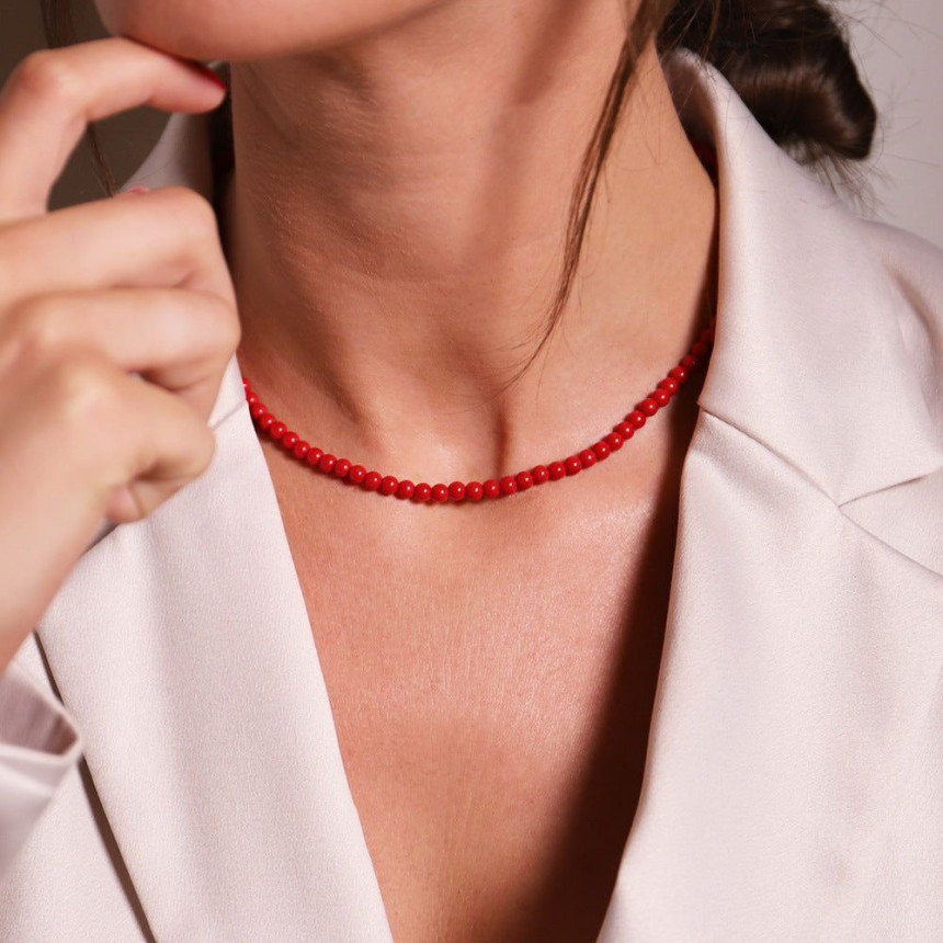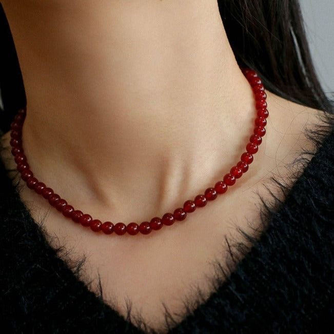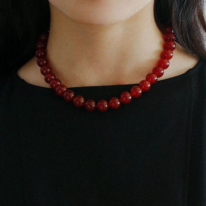 레드 오닉스 산호 진주 목걸이 2mm 4mm 6mm 10mm 12mm