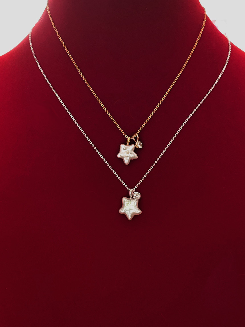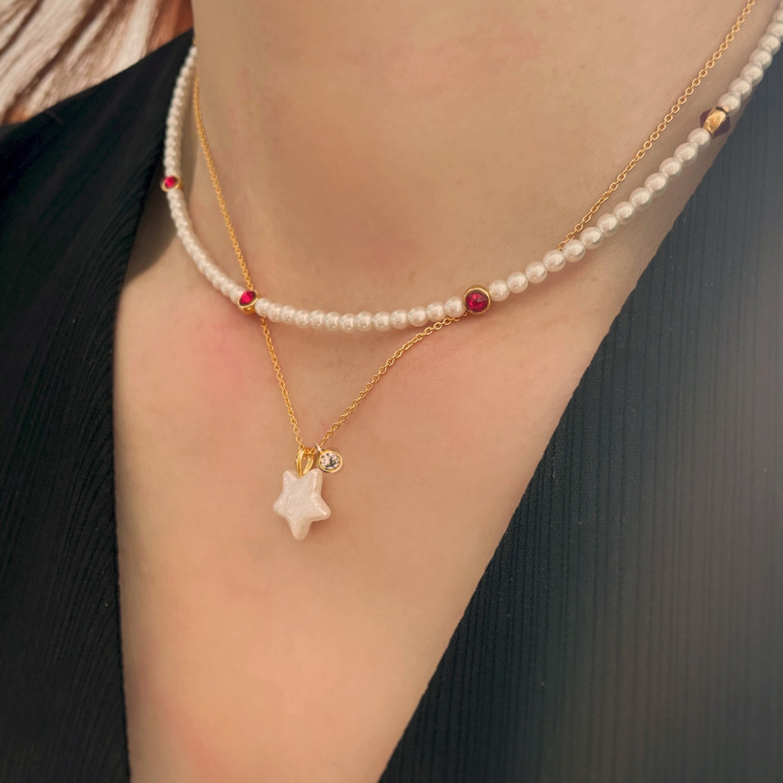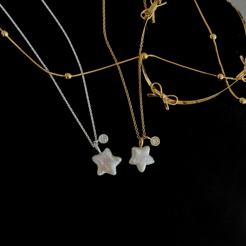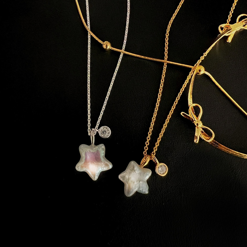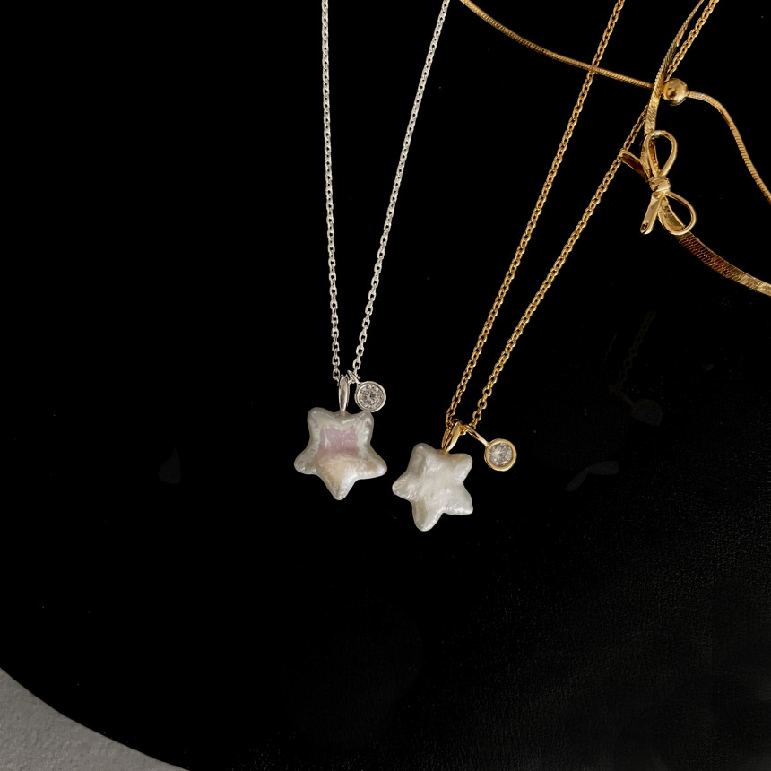 925S 별 진주 펜던트 크리스탈 골드 목걸이