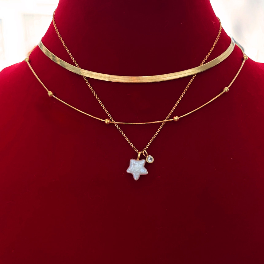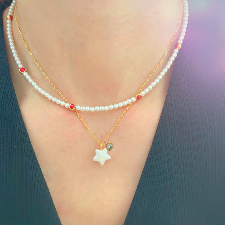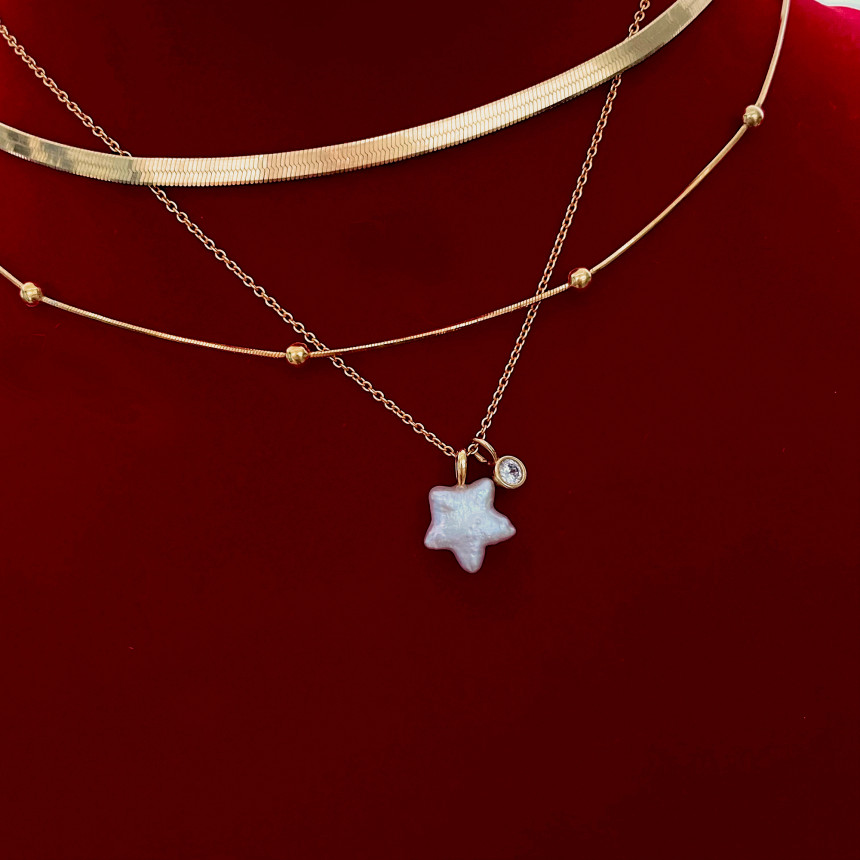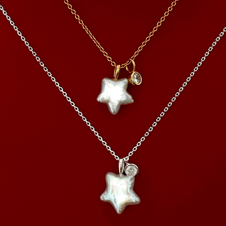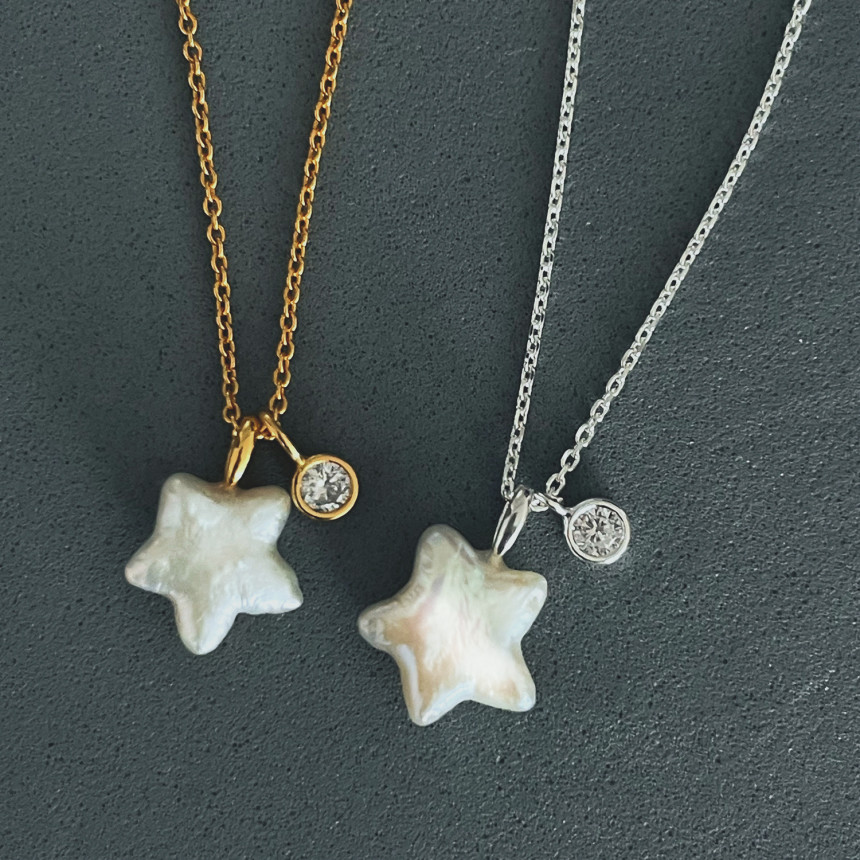 925S 별 진주 펜던트 크리스탈 골드 목걸이