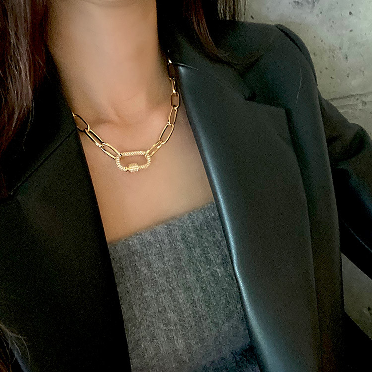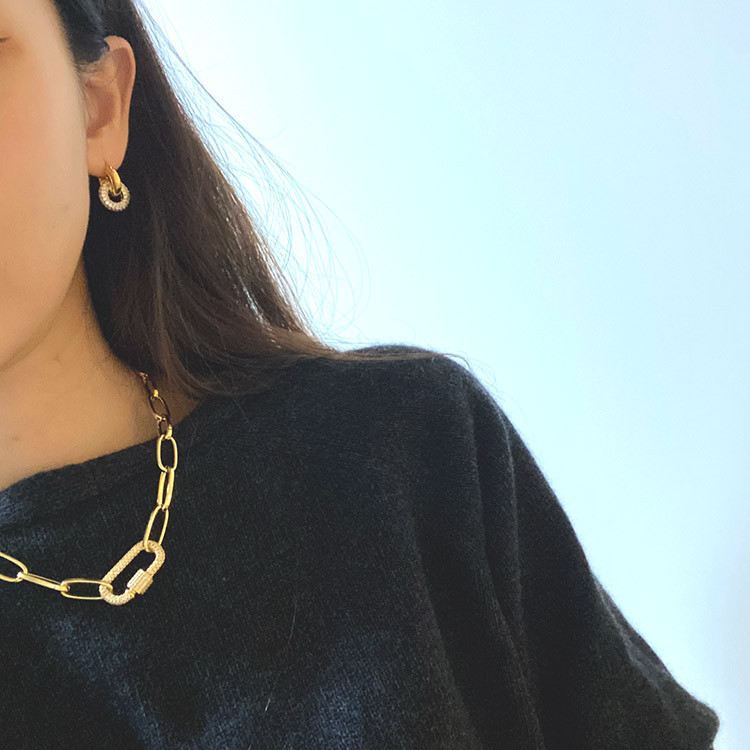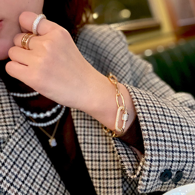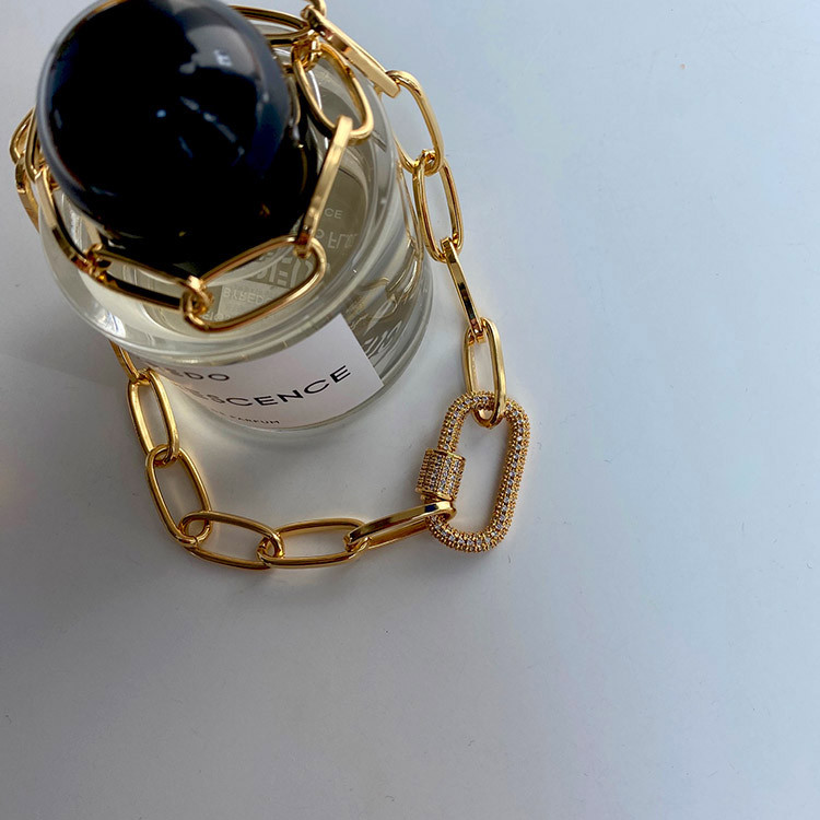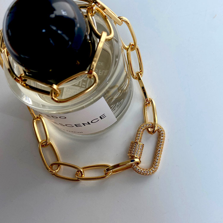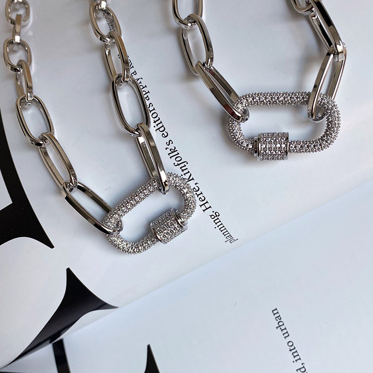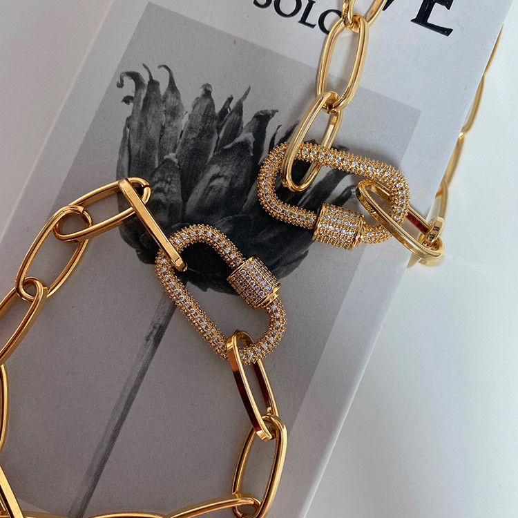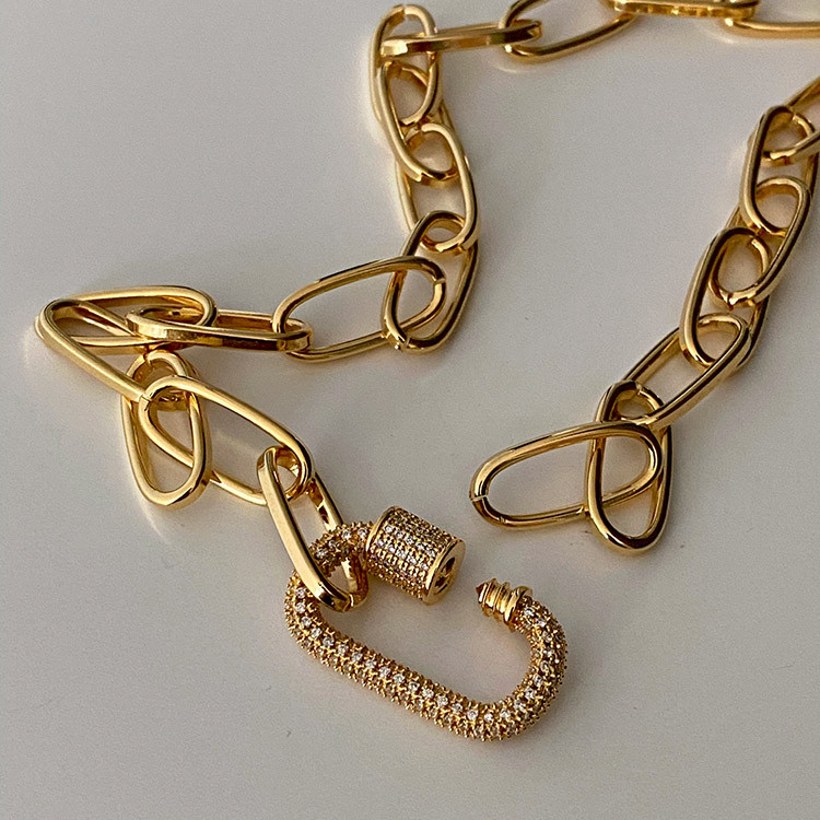 파베 카라비너 볼드 체인 목걸이 팔찌