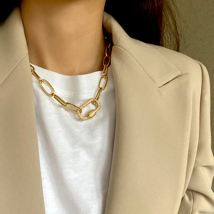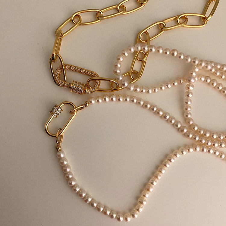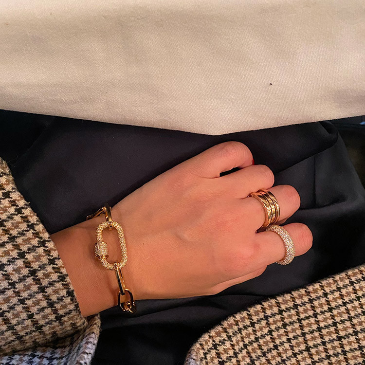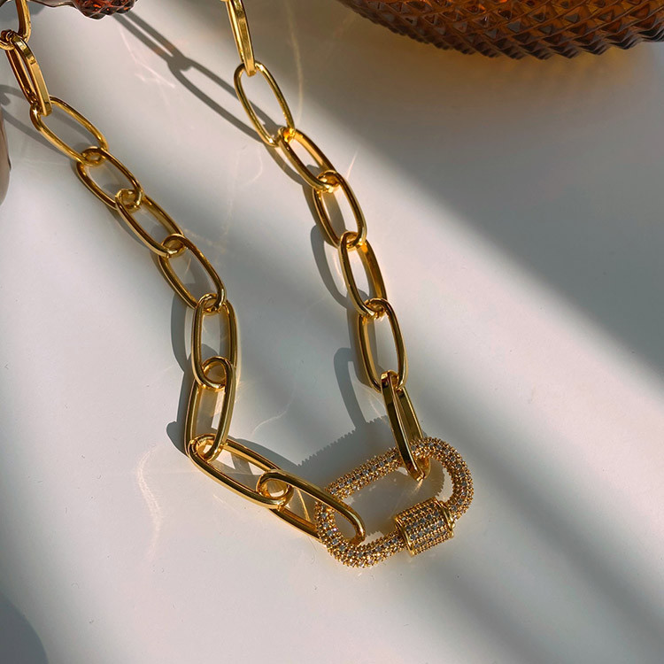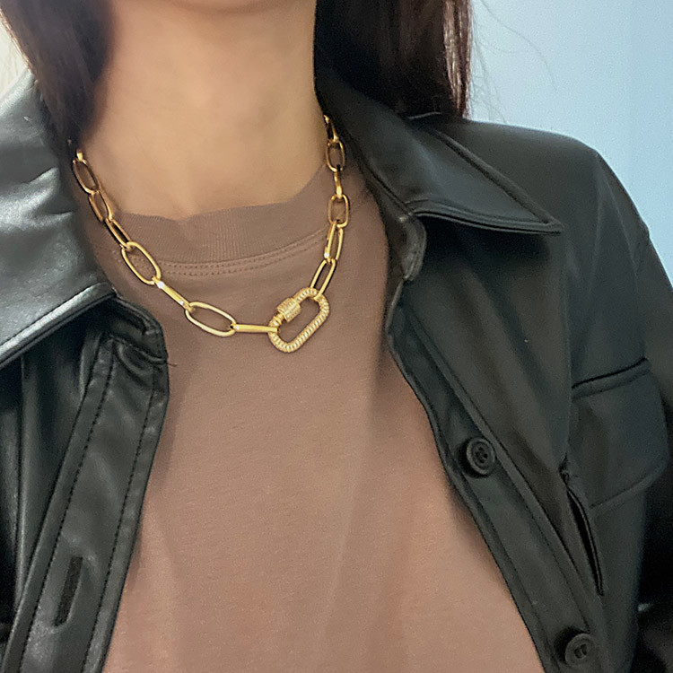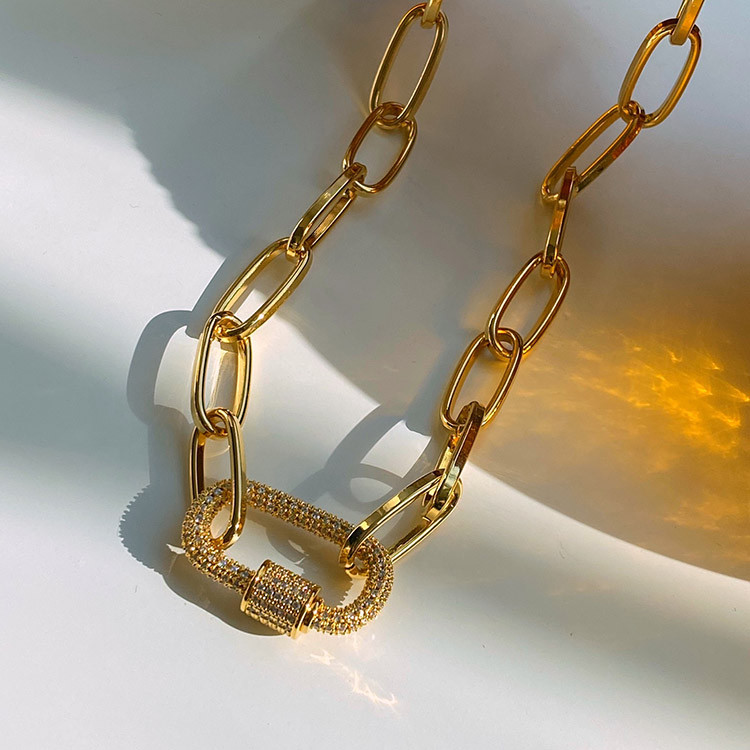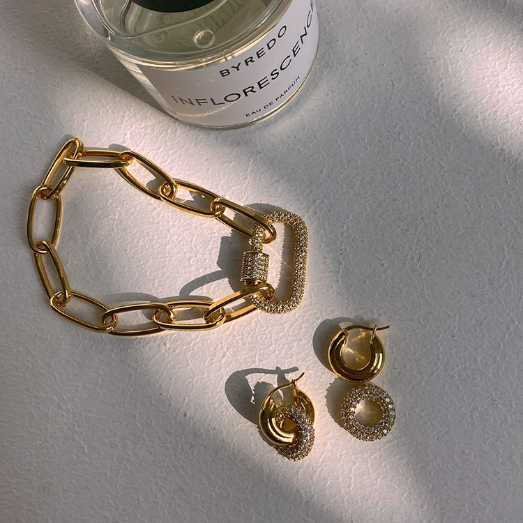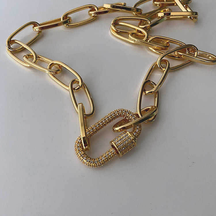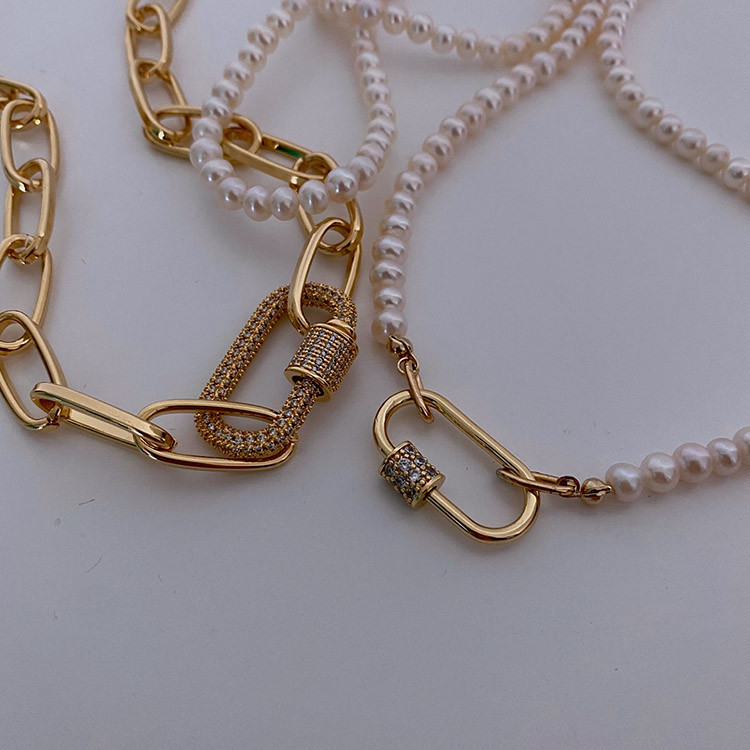 파베 카라비너 볼드 체인 목걸이 팔찌