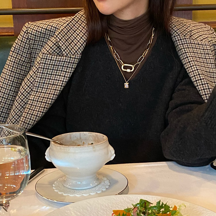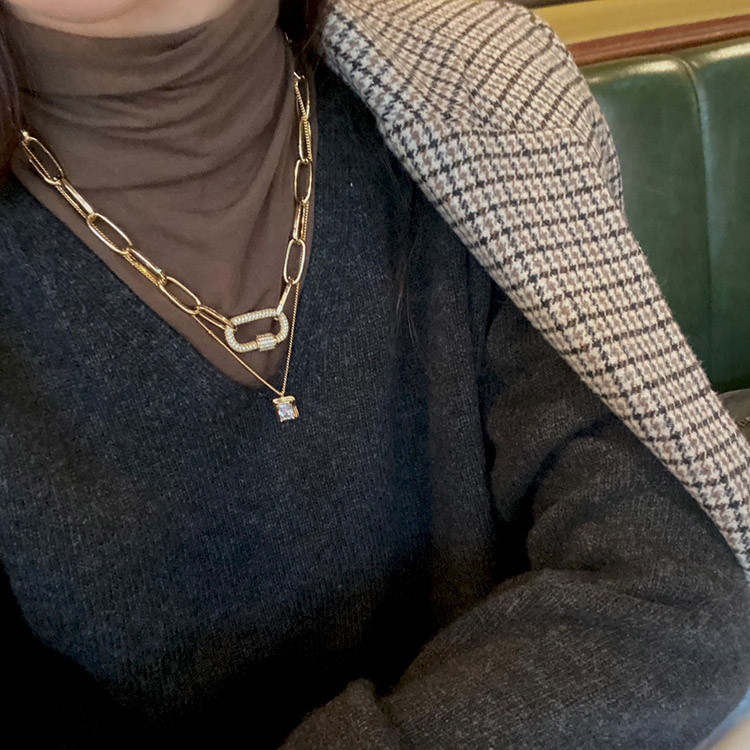 파베 카라비너 사각 펜던트 볼드 체인 목걸이 팔찌