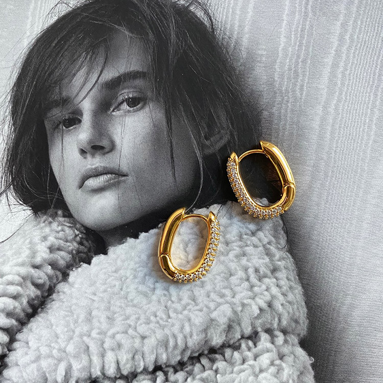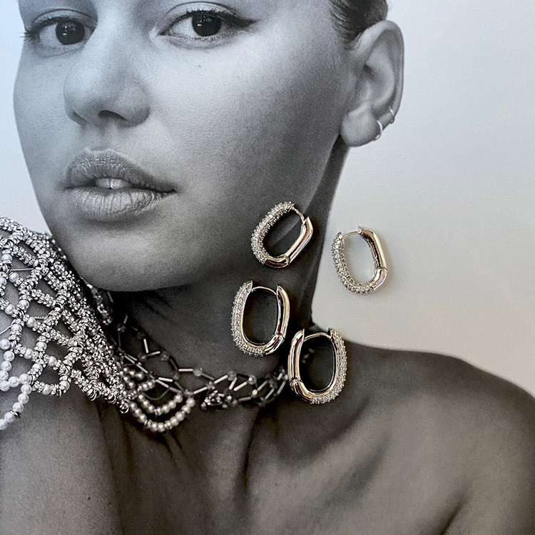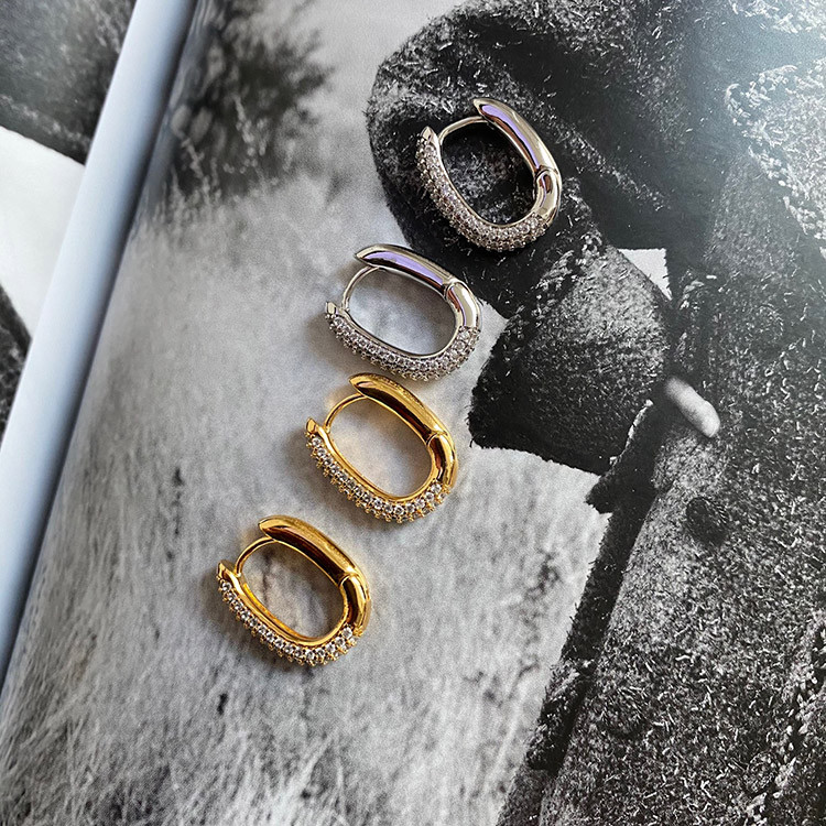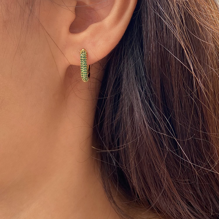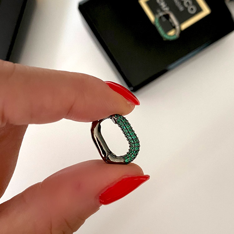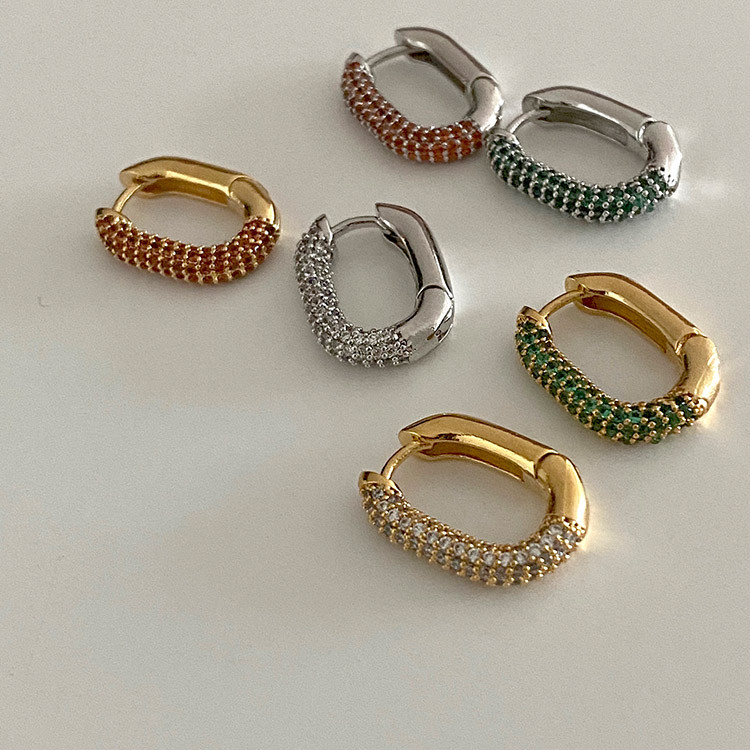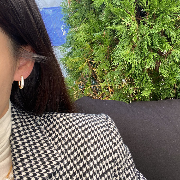 Sparkling Pave Square Mini Ring Earring 스파클링 파베 스퀘어 원터치 미니 링귀걸이 2 Size