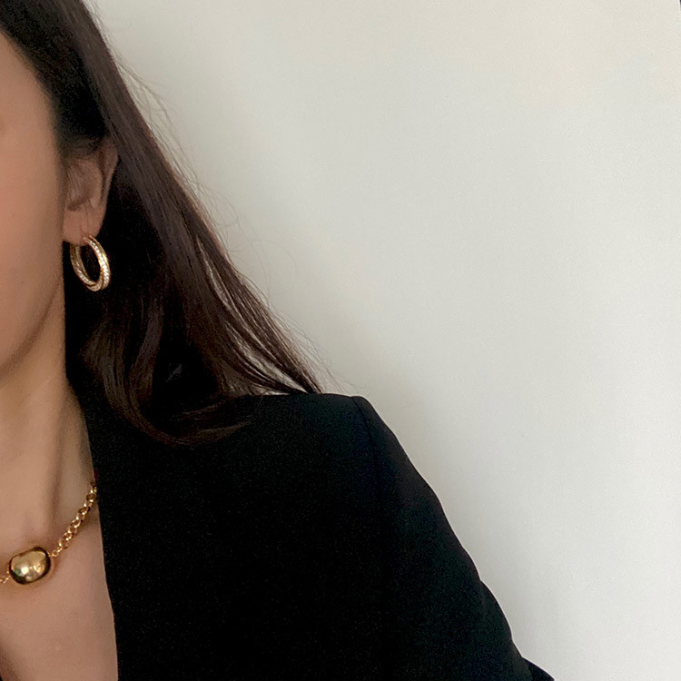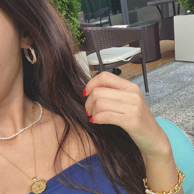 라지 트위스트 지르코니아 큐빅 후프 링 귀걸이