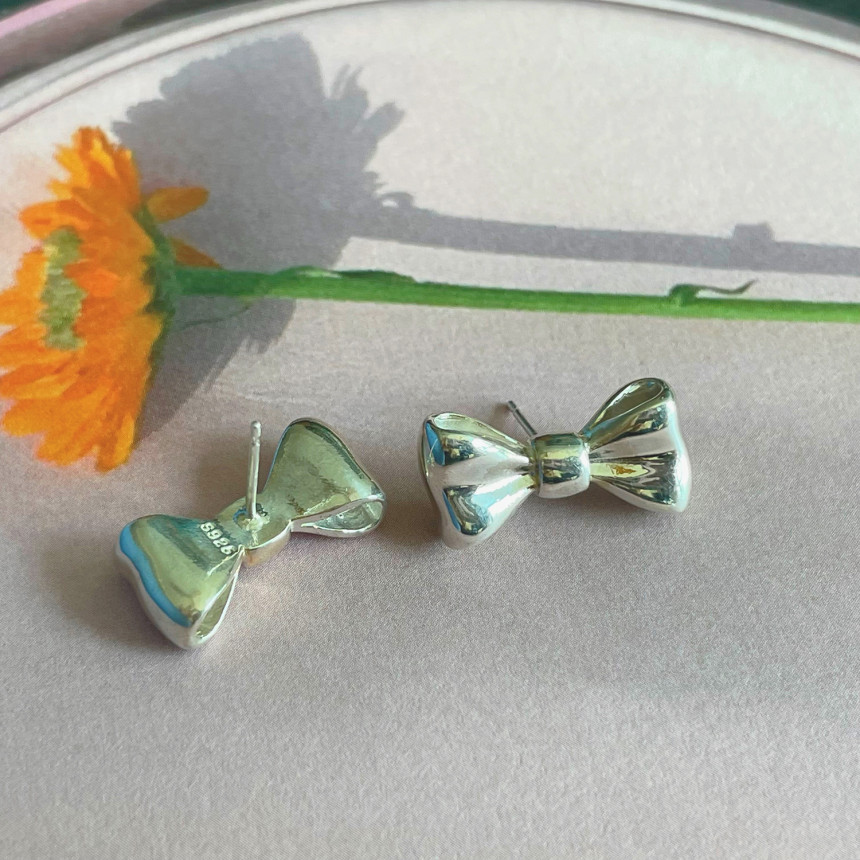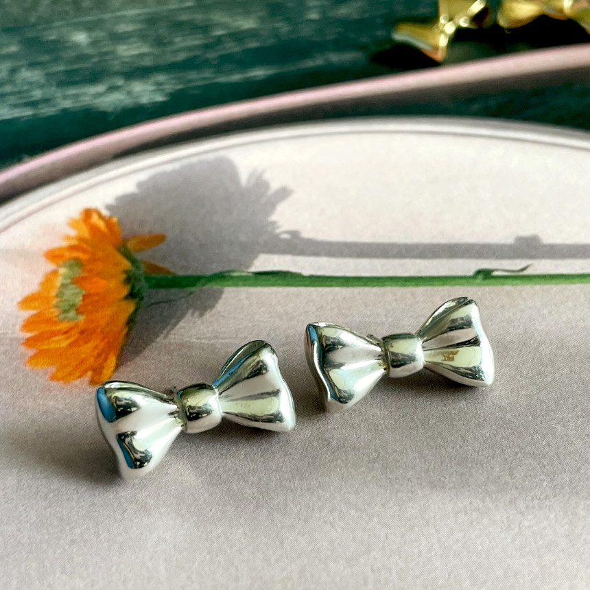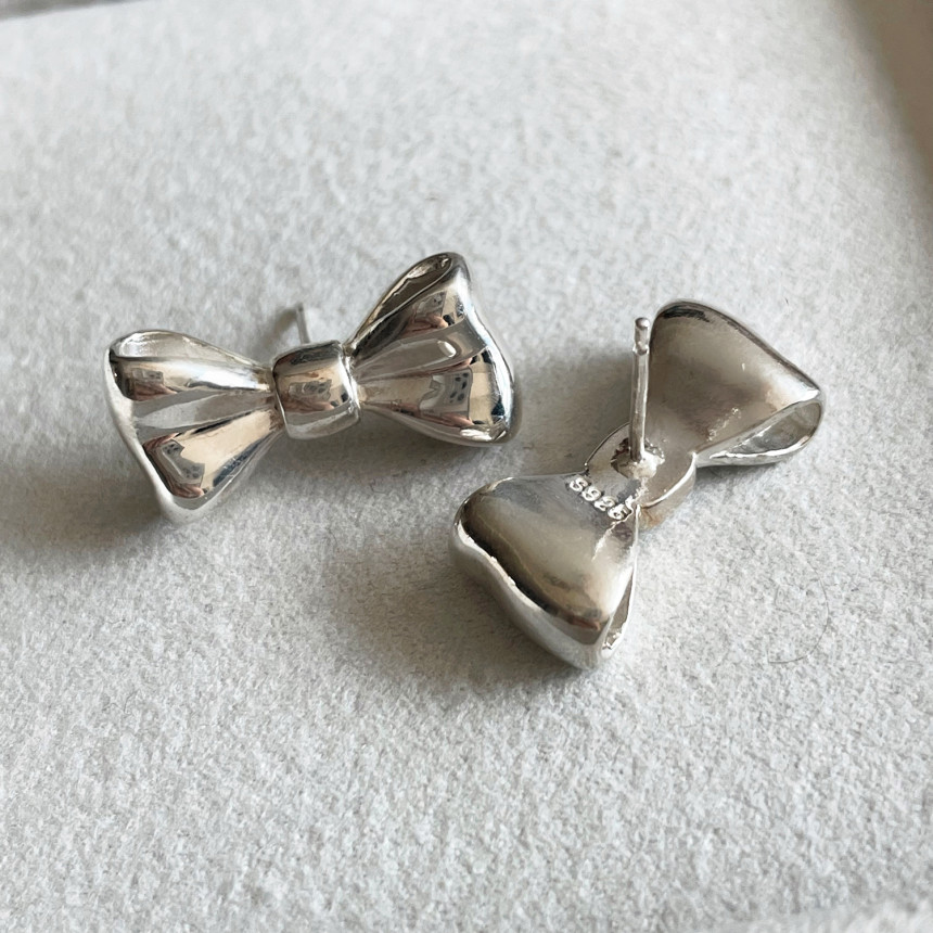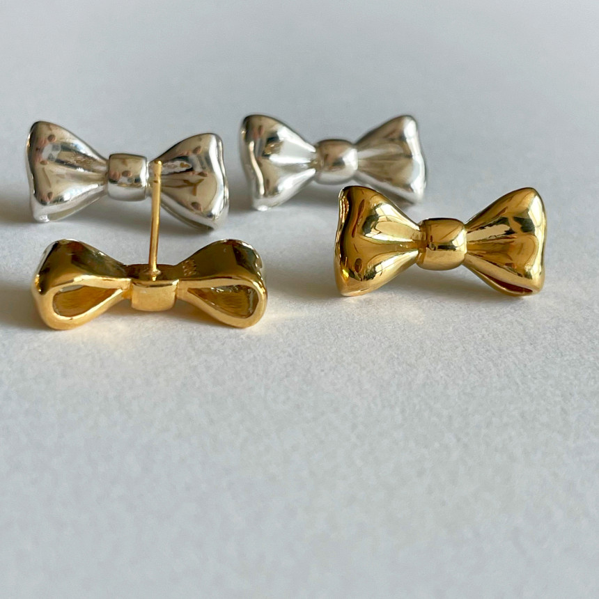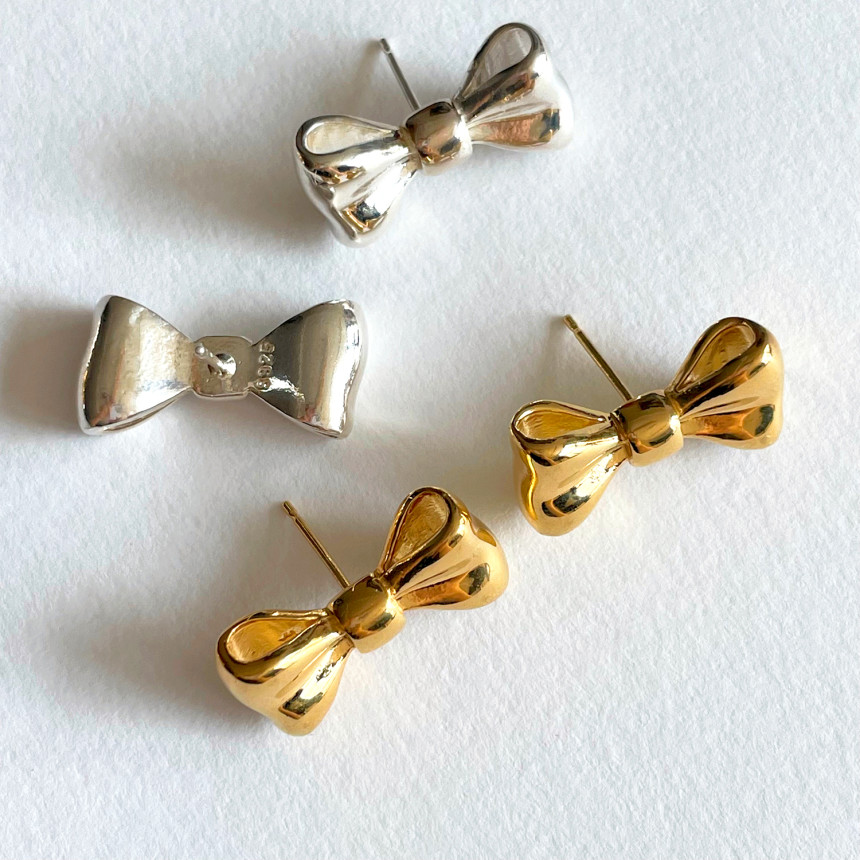925실버 볼드 보타이 볼륨 리본 골드 실버 데일리 귀걸이