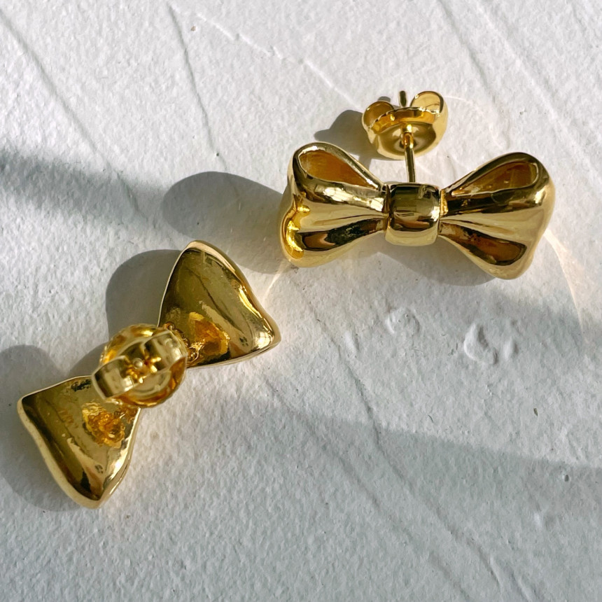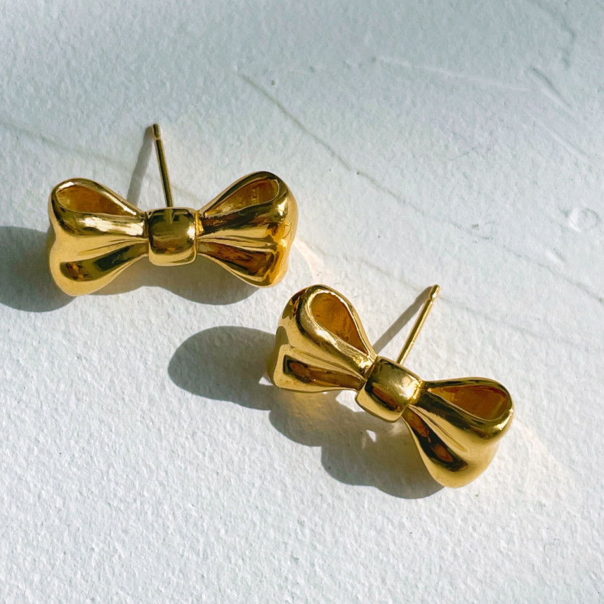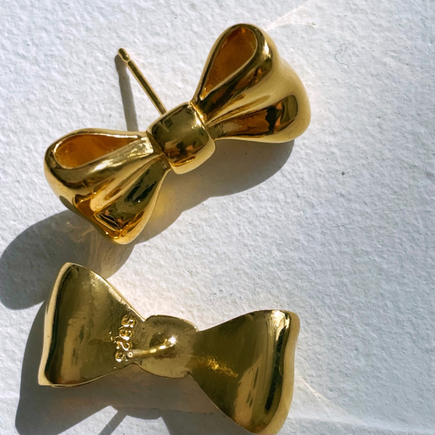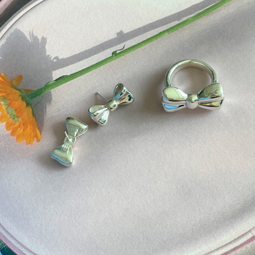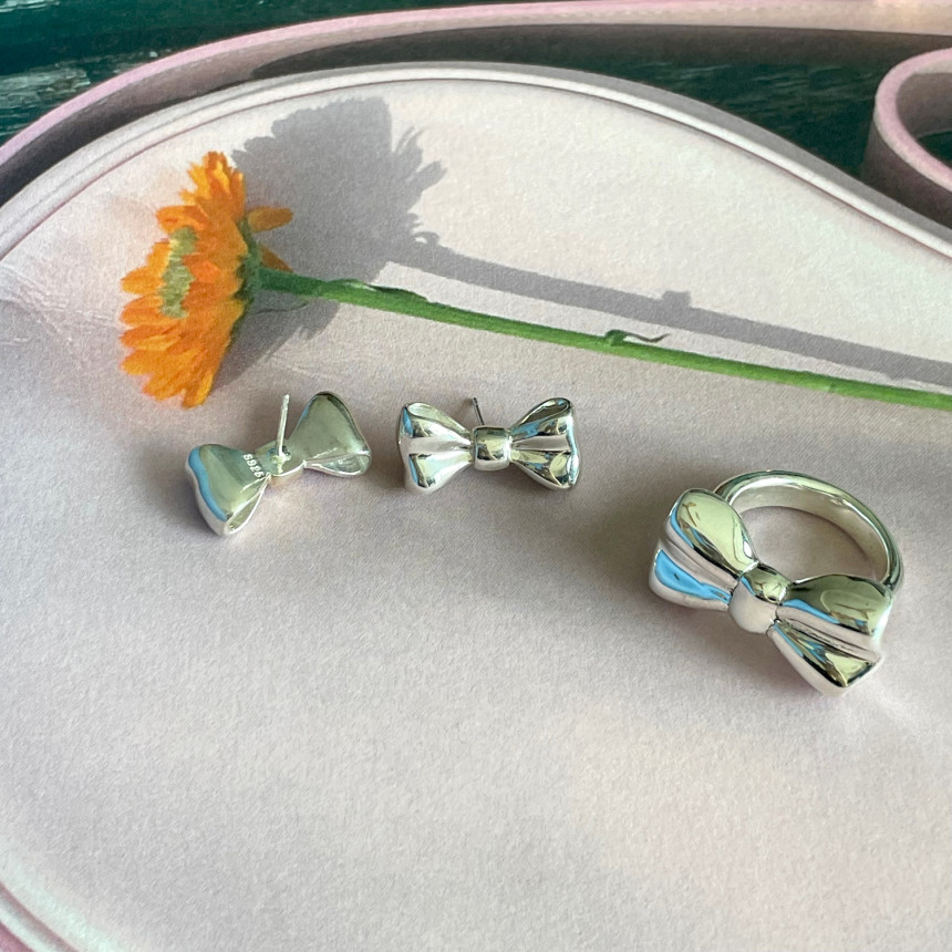 925실버 볼드 보타이 볼륨 리본 골드 실버 데일리 귀걸이
