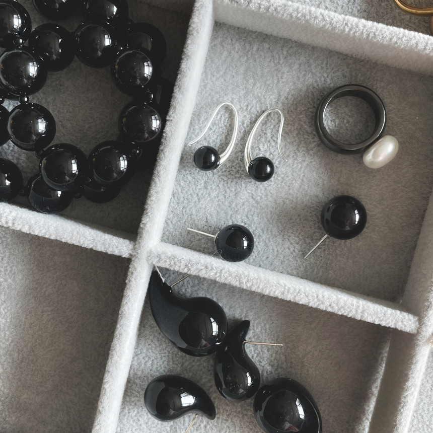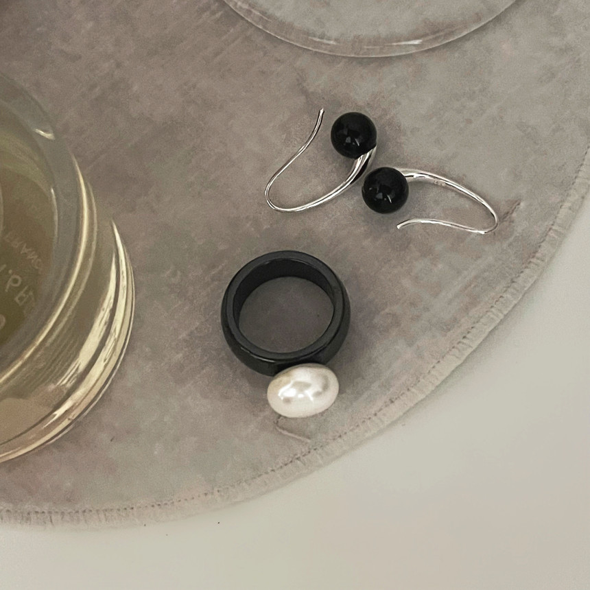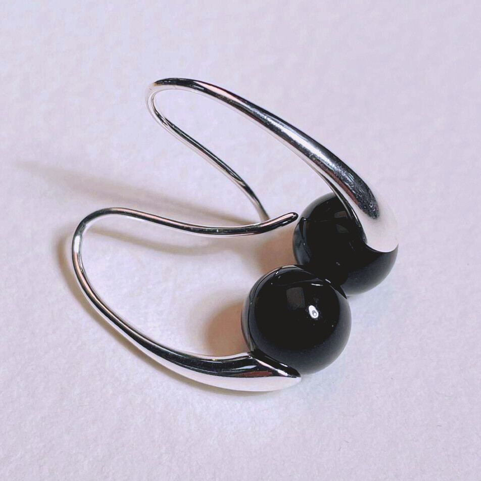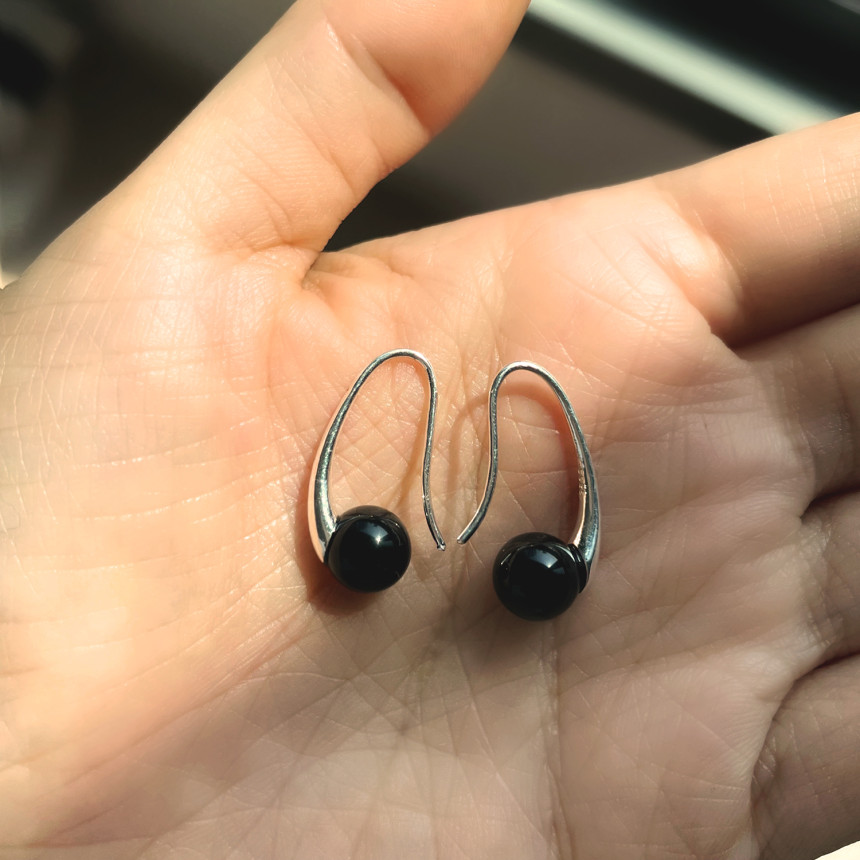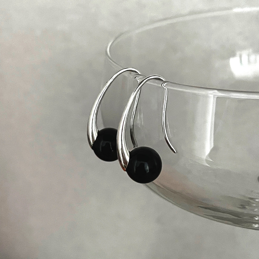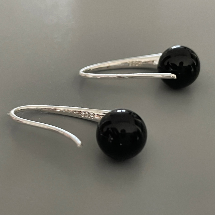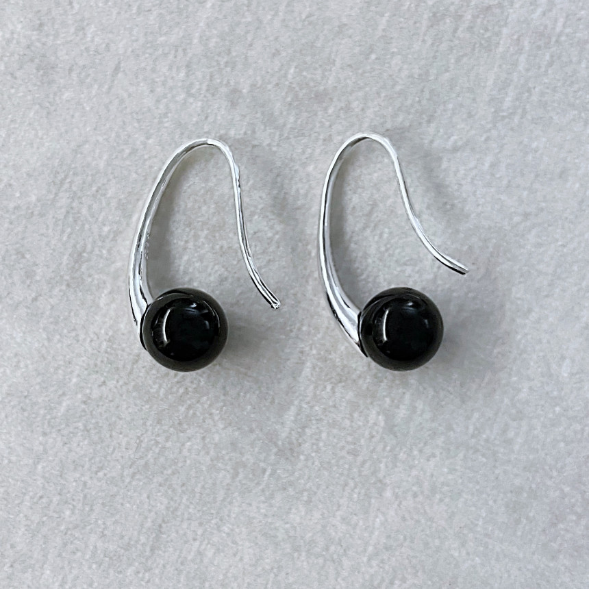 925S 미니 퀘이버 블랙 오닉스 후크 귀걸이