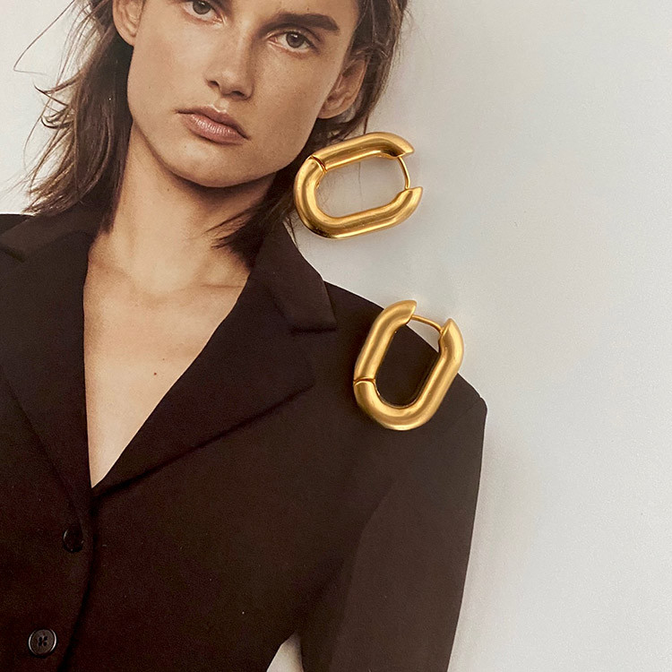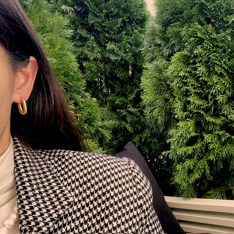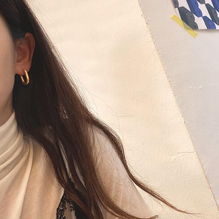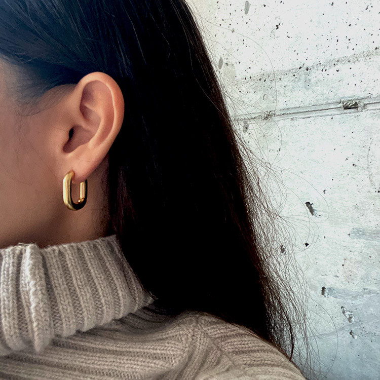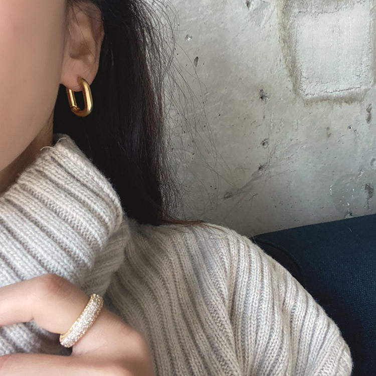 올셀 라운드 스퀘어 사각 볼드 원터치 링 귀걸이
