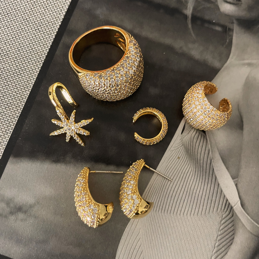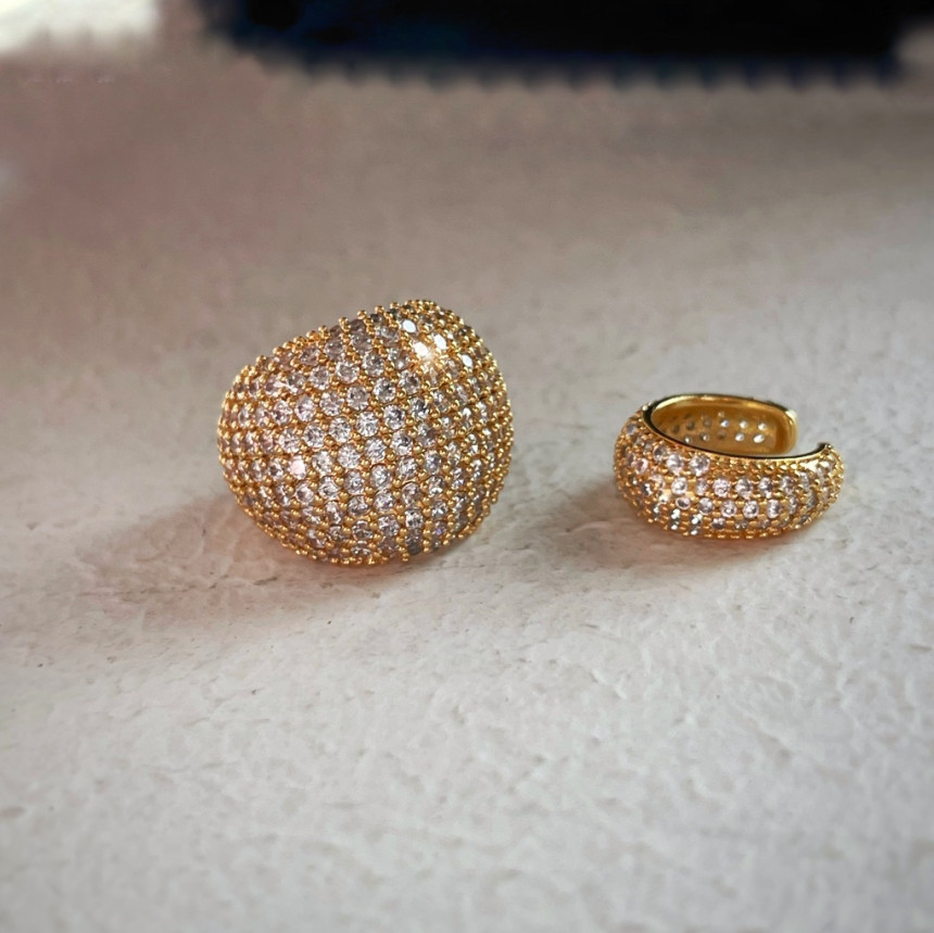 블링블링하게 빛나는 볼륨의 파베 이어커프가 매우 고급스러운 디자인입니다.