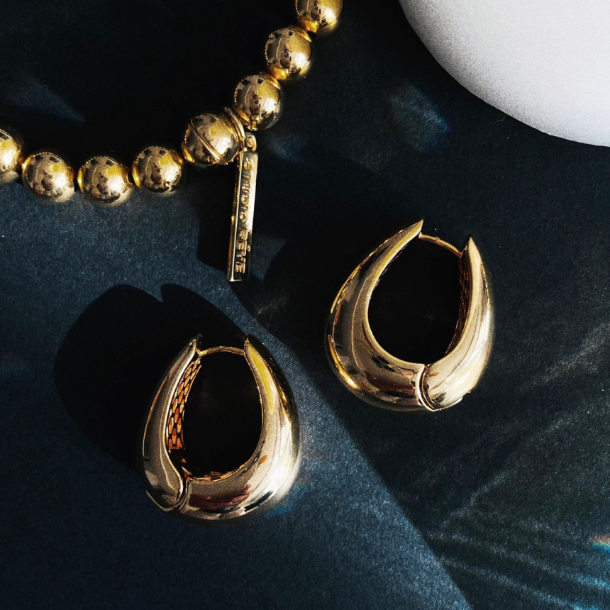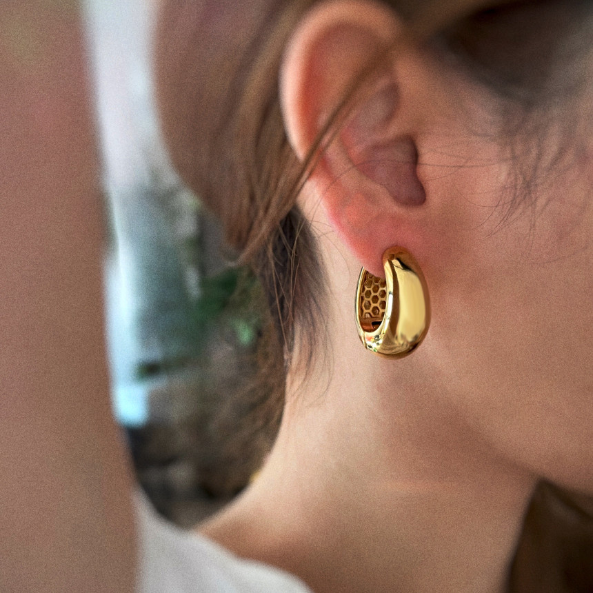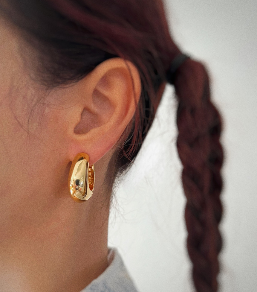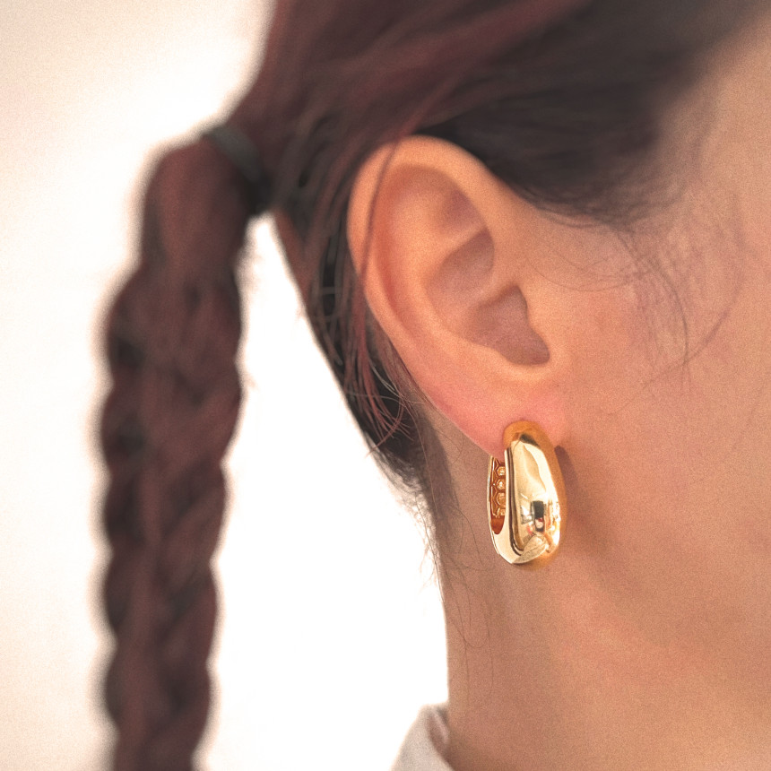 오버사이즈 디자인의 볼드한 후프 귀걸이에요.