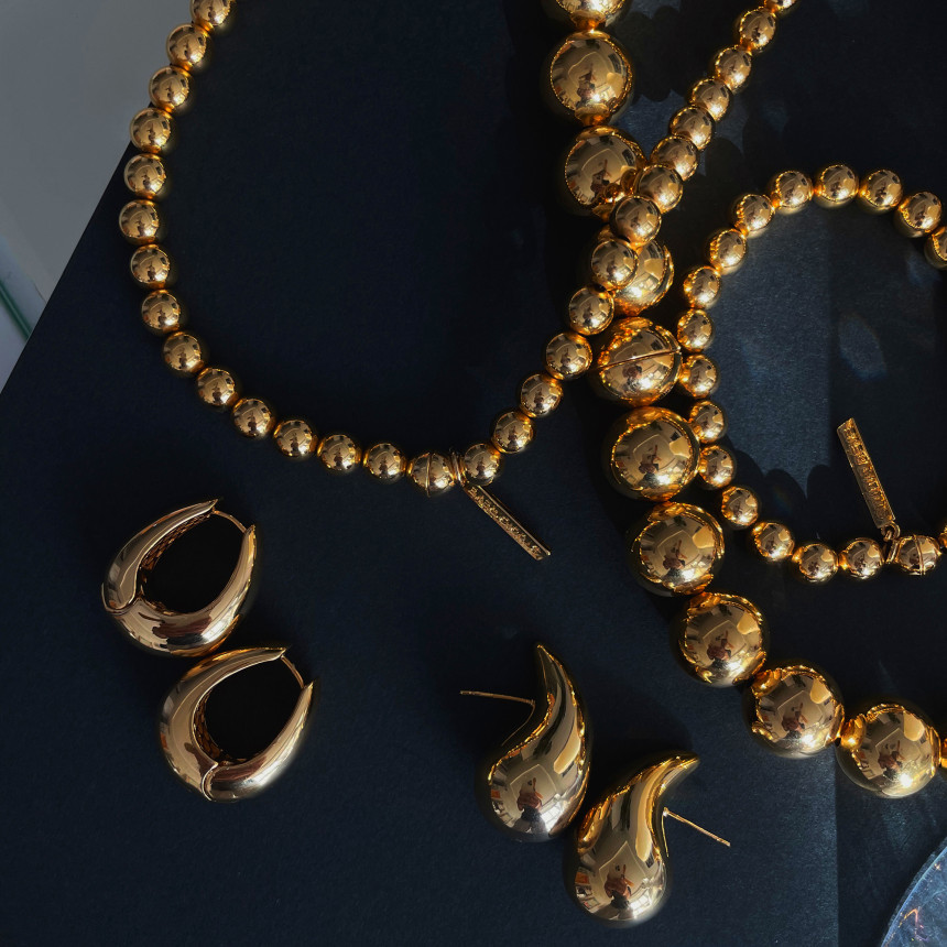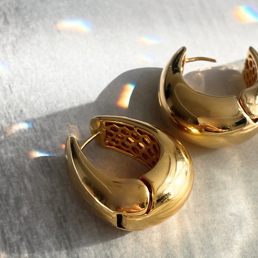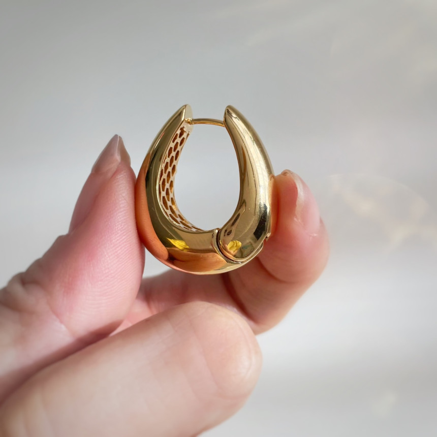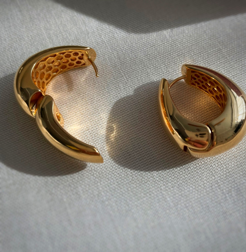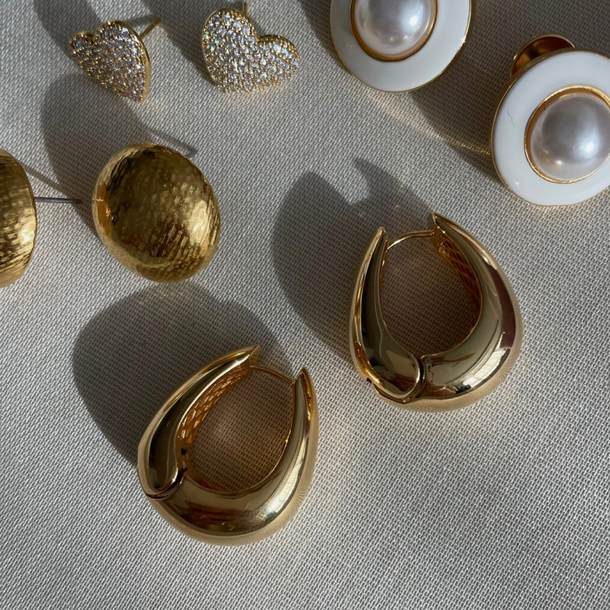 오버사이즈 디자인의 볼드한 후프 귀걸이에요.