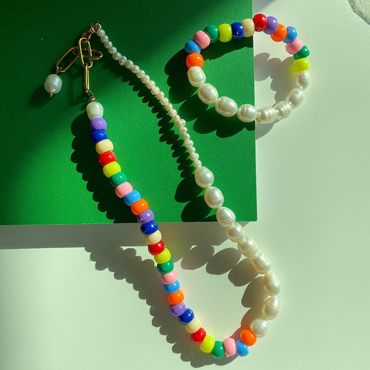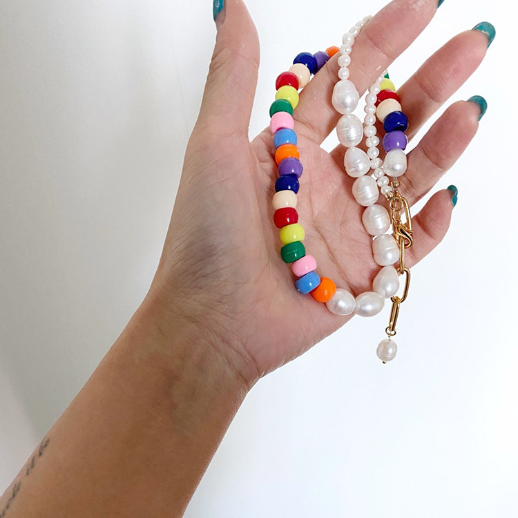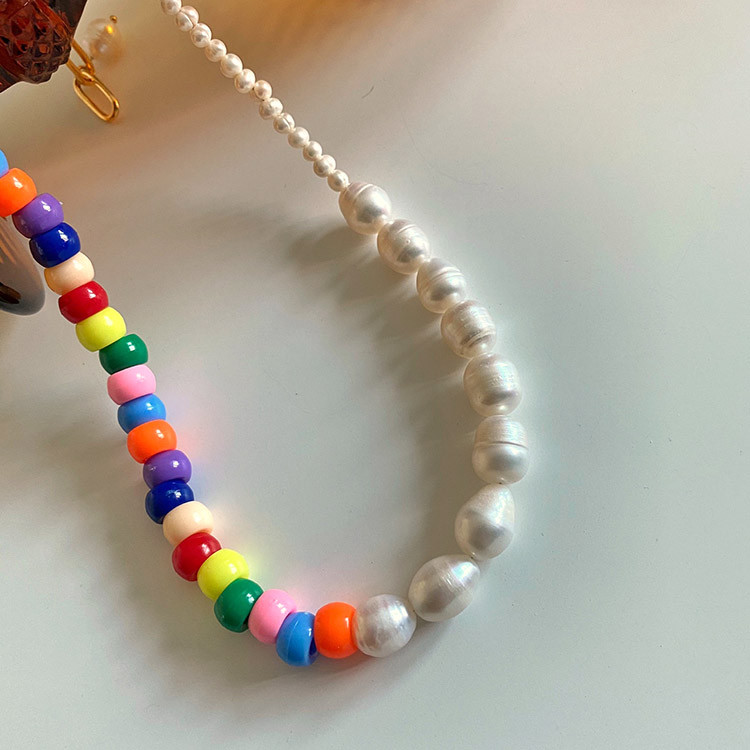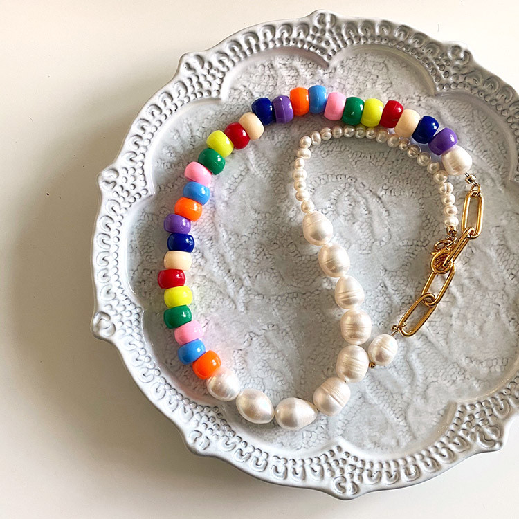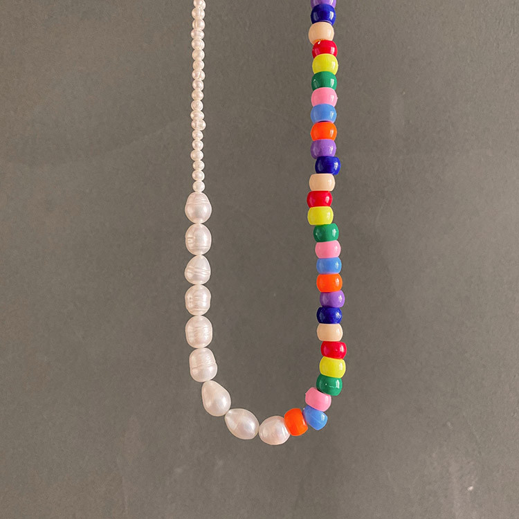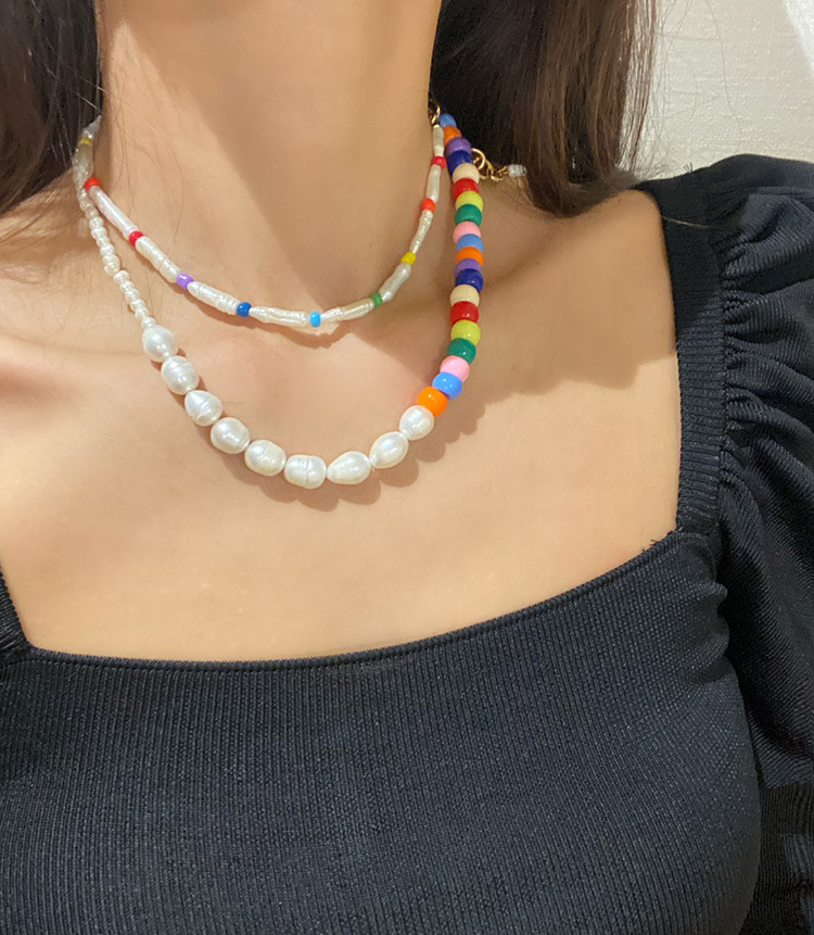 컬러풀 포니 비즈 천연 담수 진주 목걸이