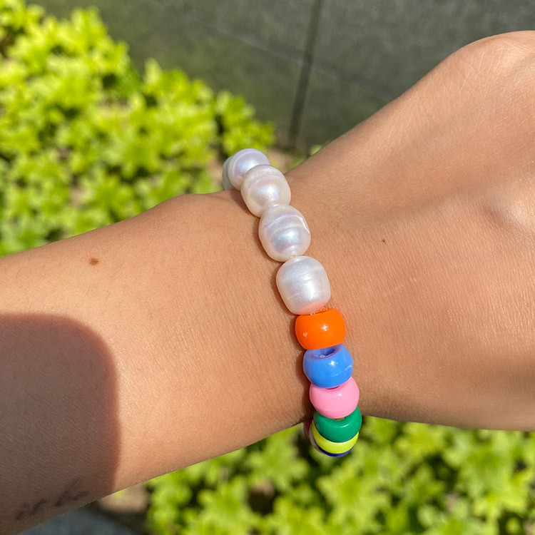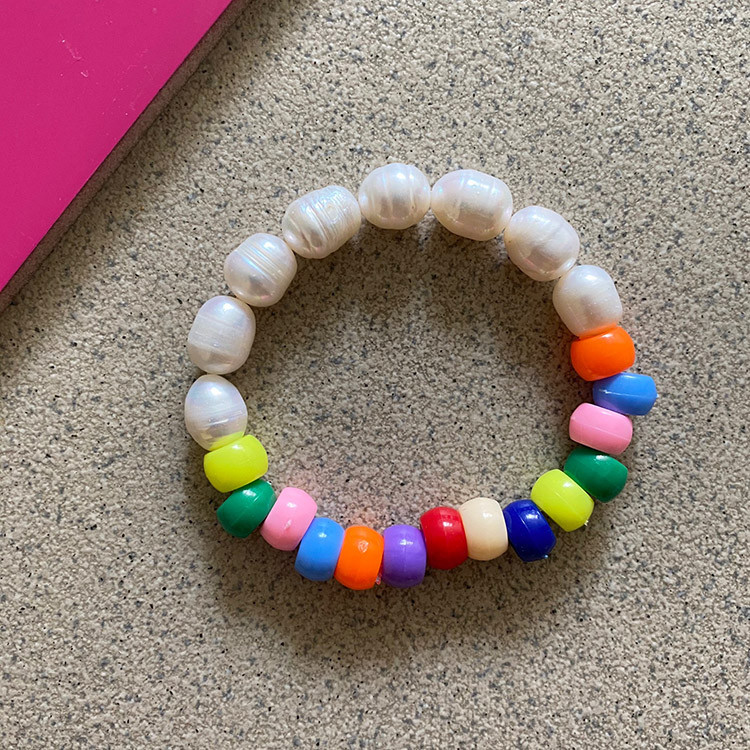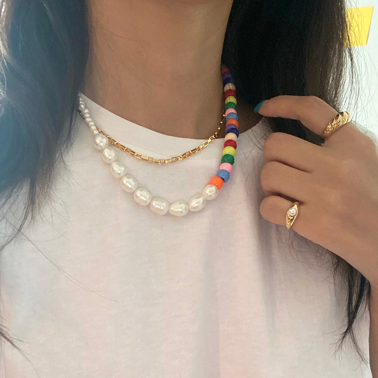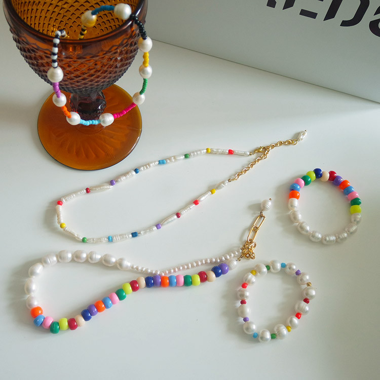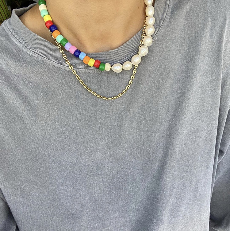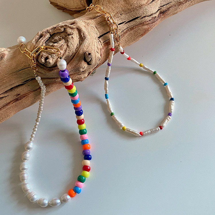 컬러풀 포니 비즈 천연 담수 진주 목걸이