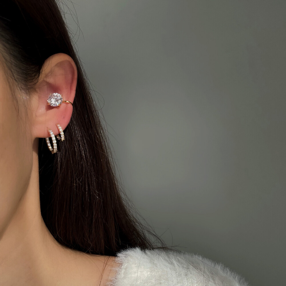 다이아몬드의 광채로 유명한 AAA 등급 큐빅 지르코니아를 사용하였고, 이어커프로도 착용 가능하고 귀걸이로도 착용이 가능하여 손이 자주 가게 될 아이템입니다.