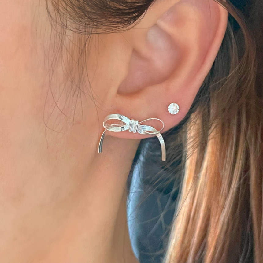 리본모양으로 묶은 듯한 모티브의 귀걸이에요.