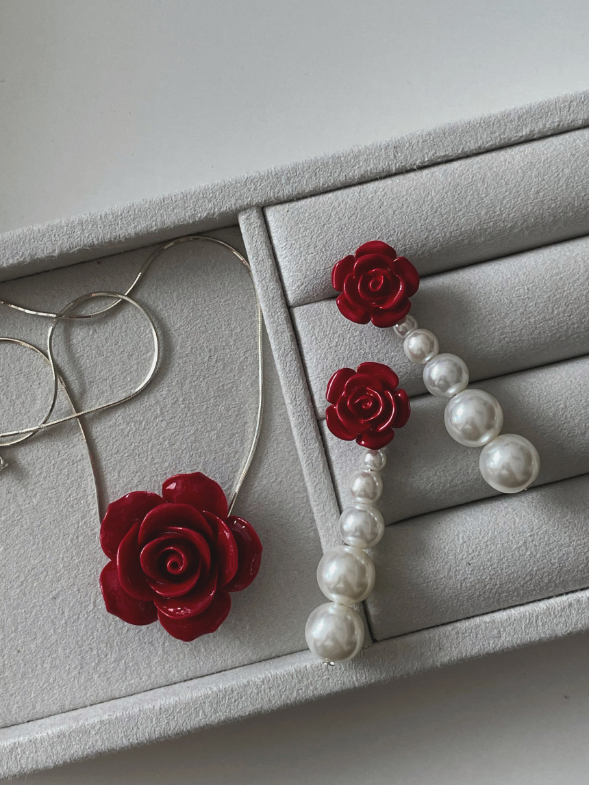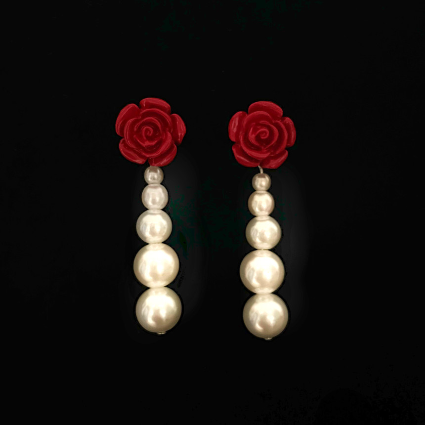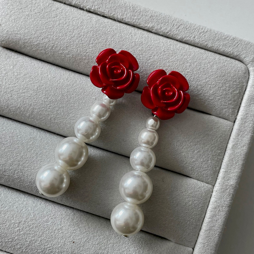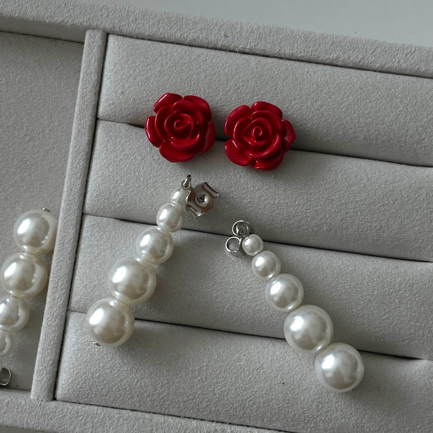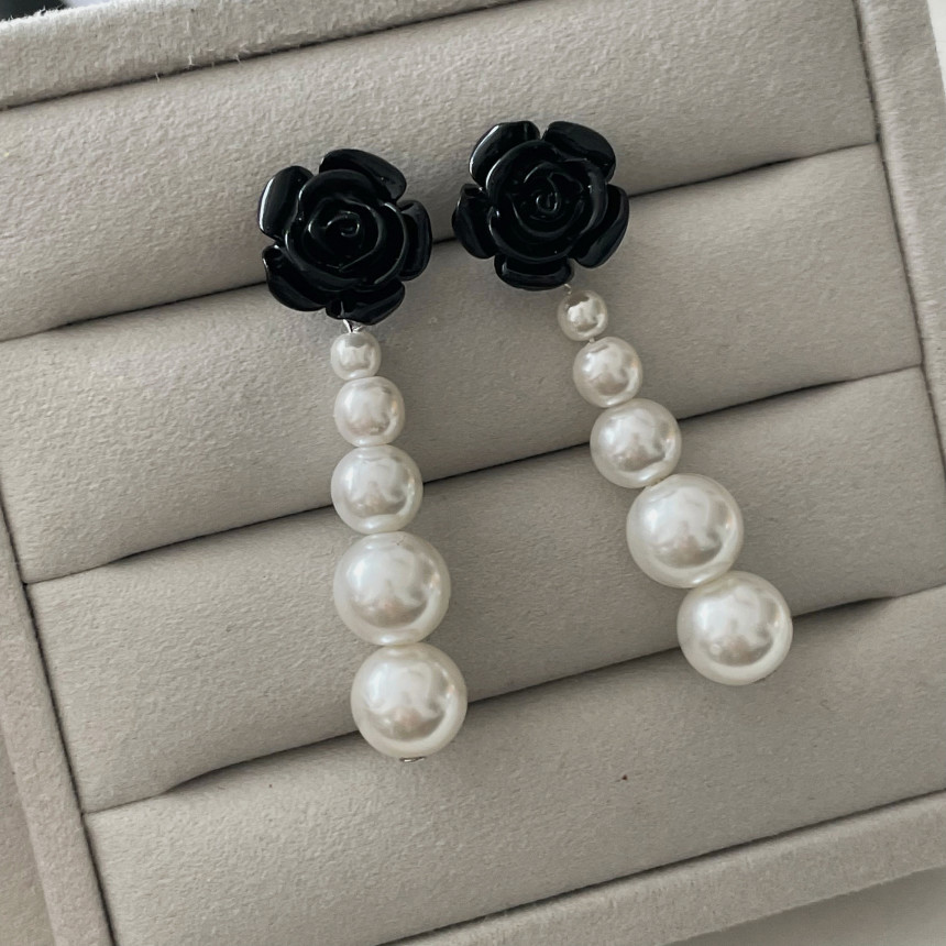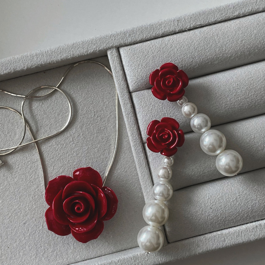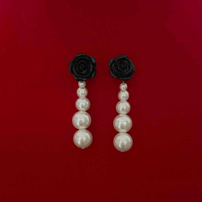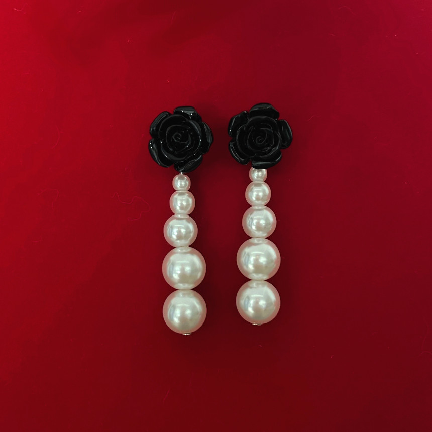 블랙 레드 장미 스터드 진주 클러치 귀걸이