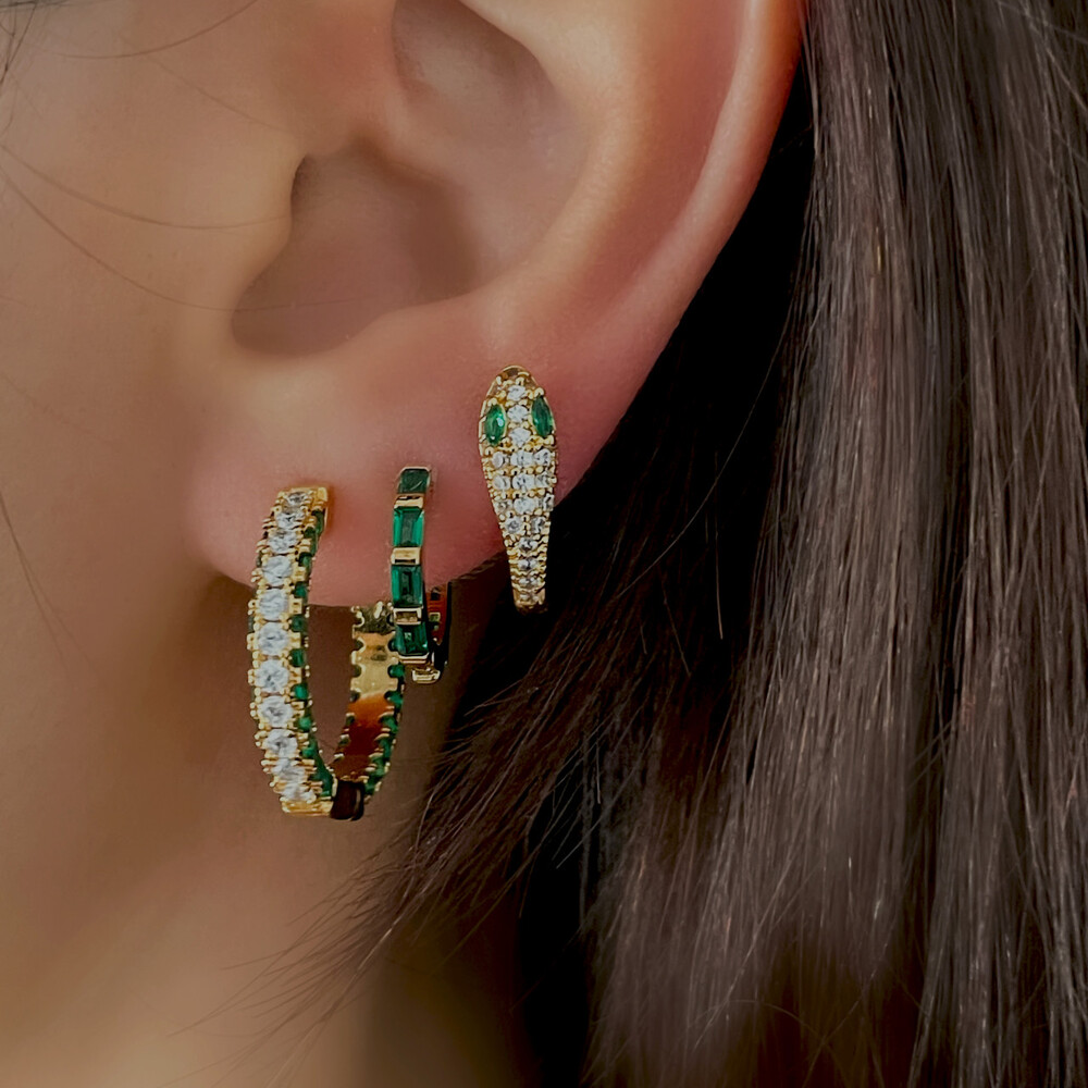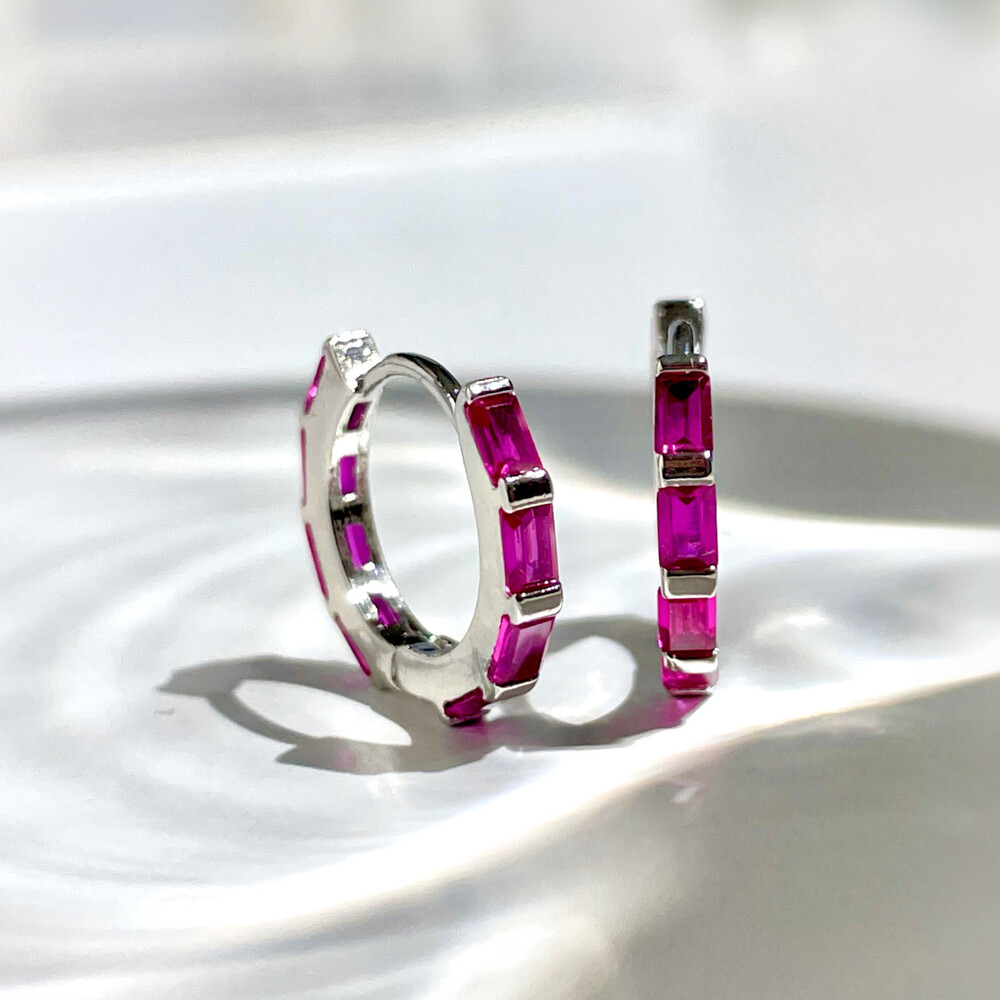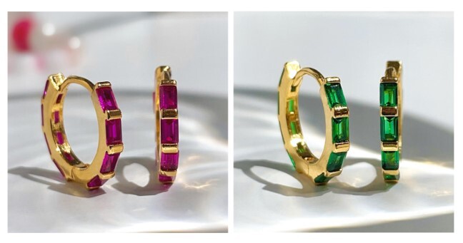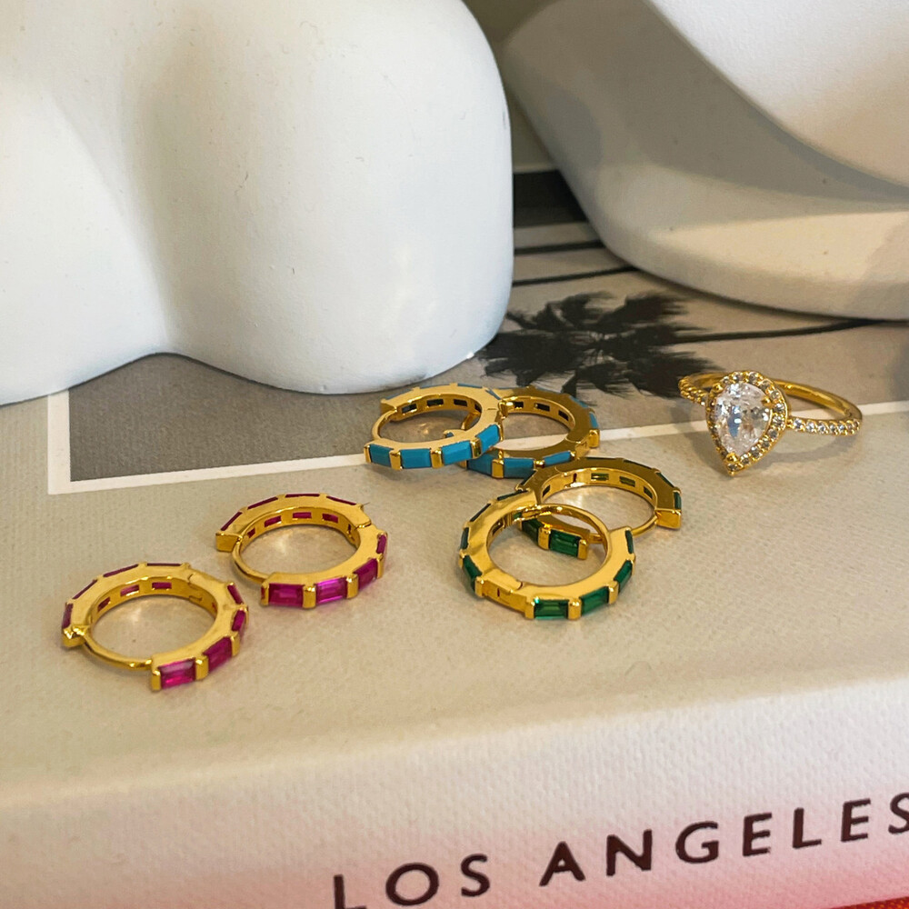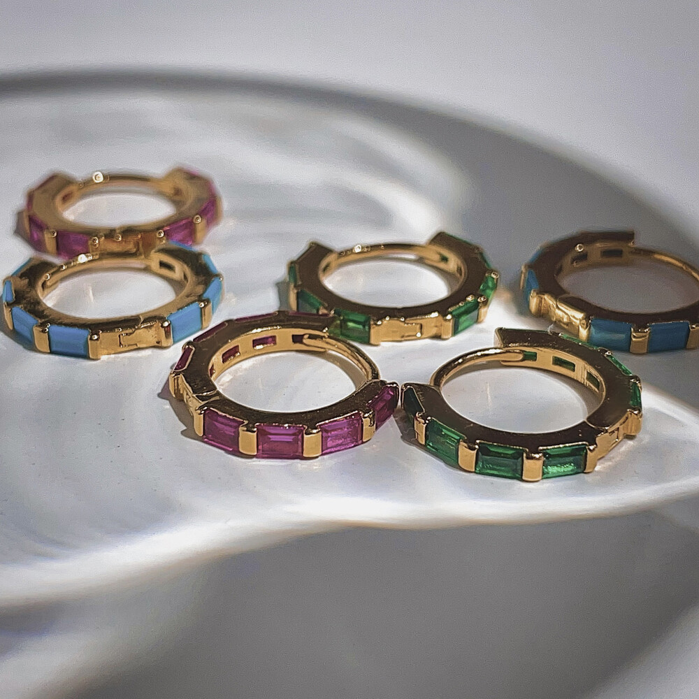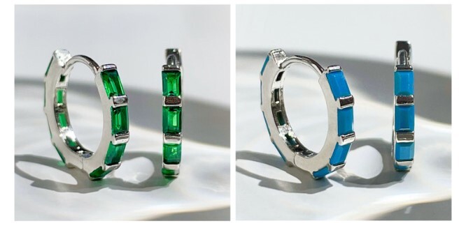 터키석, 에메랄드, 푸시아 컬러의 큐빅이 디자인