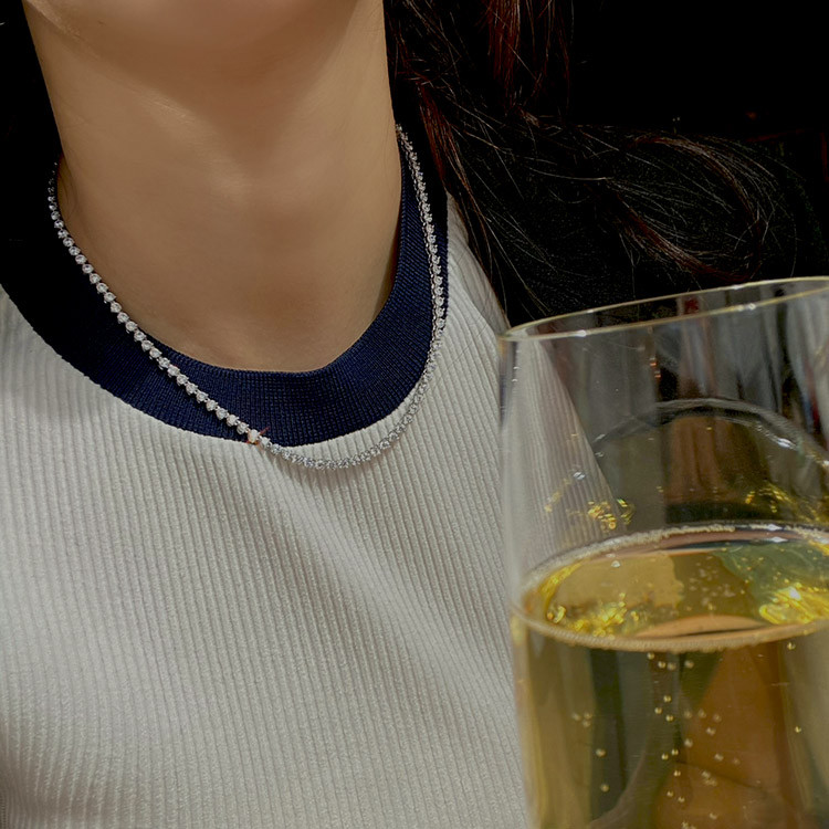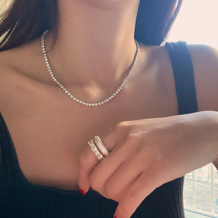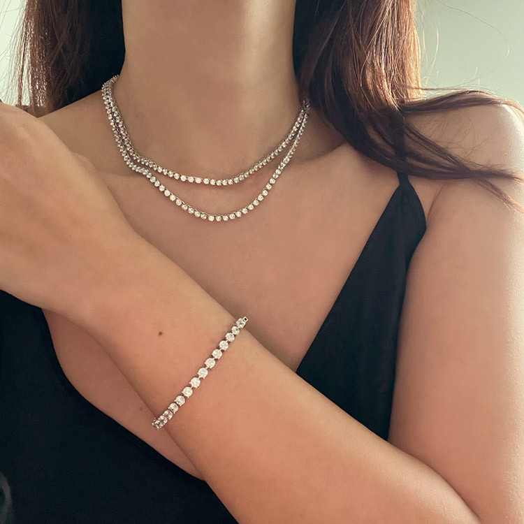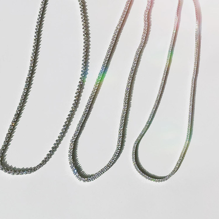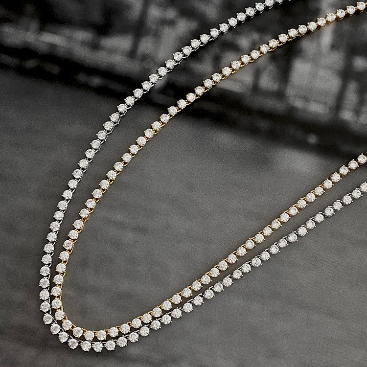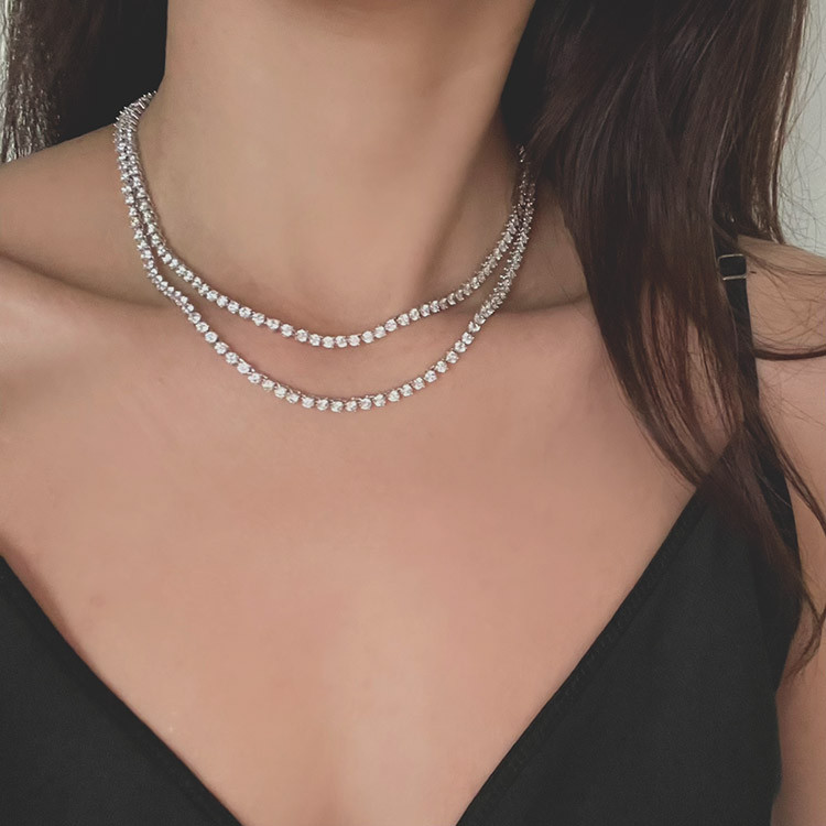 3MM 3프롱 라운드 테니스 목걸이 2Size 3Colors