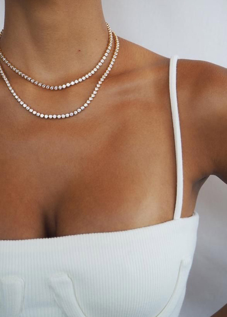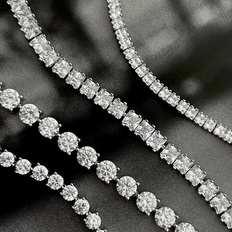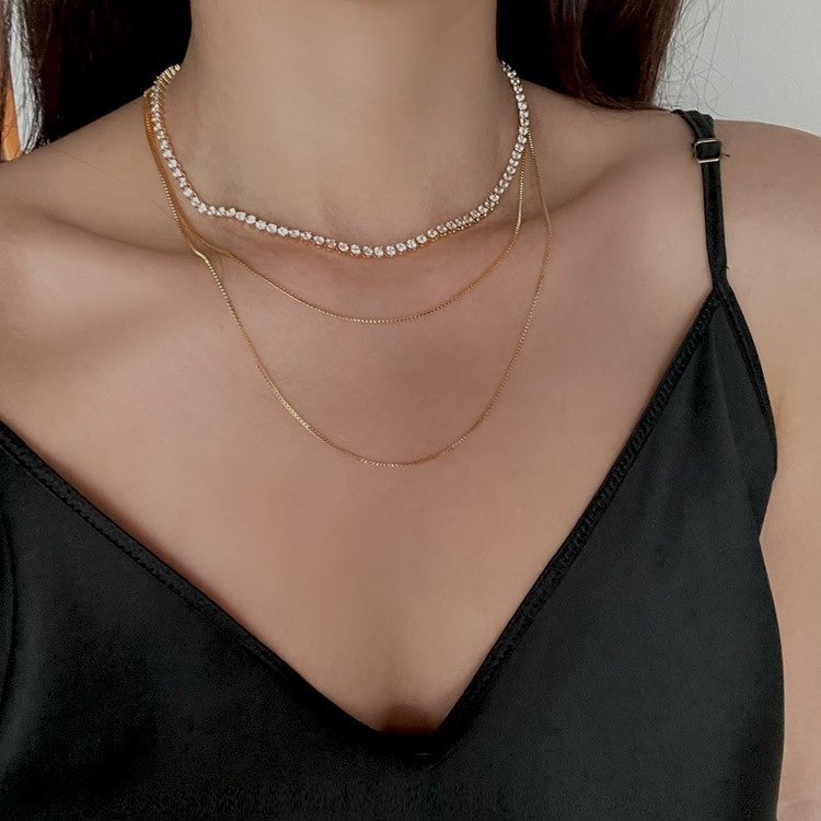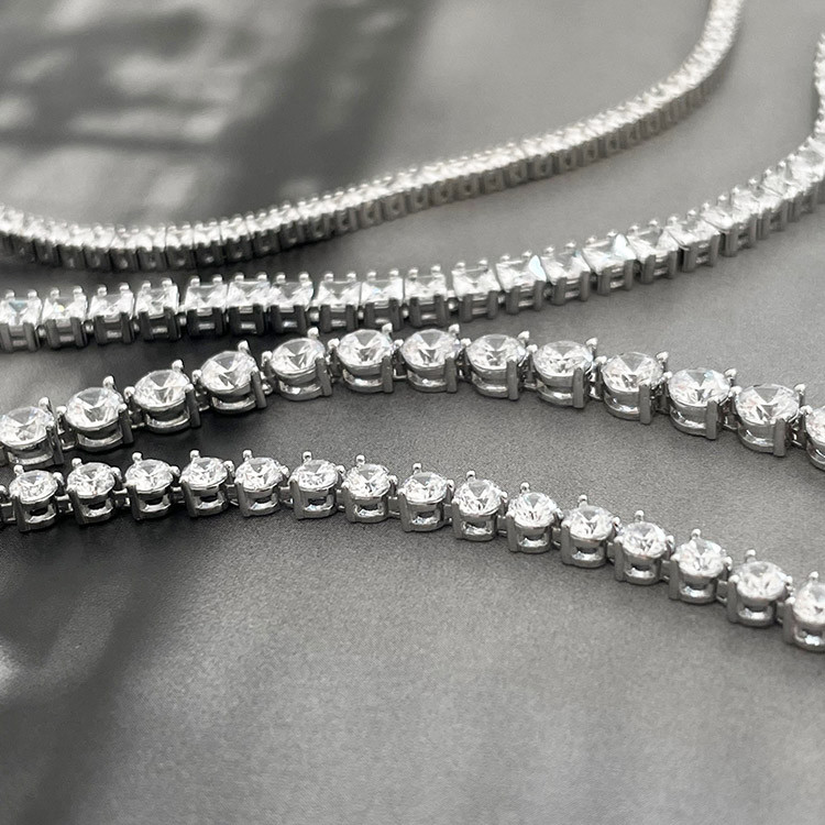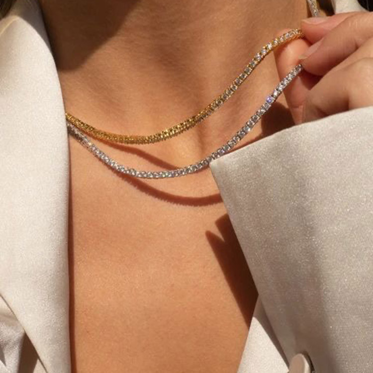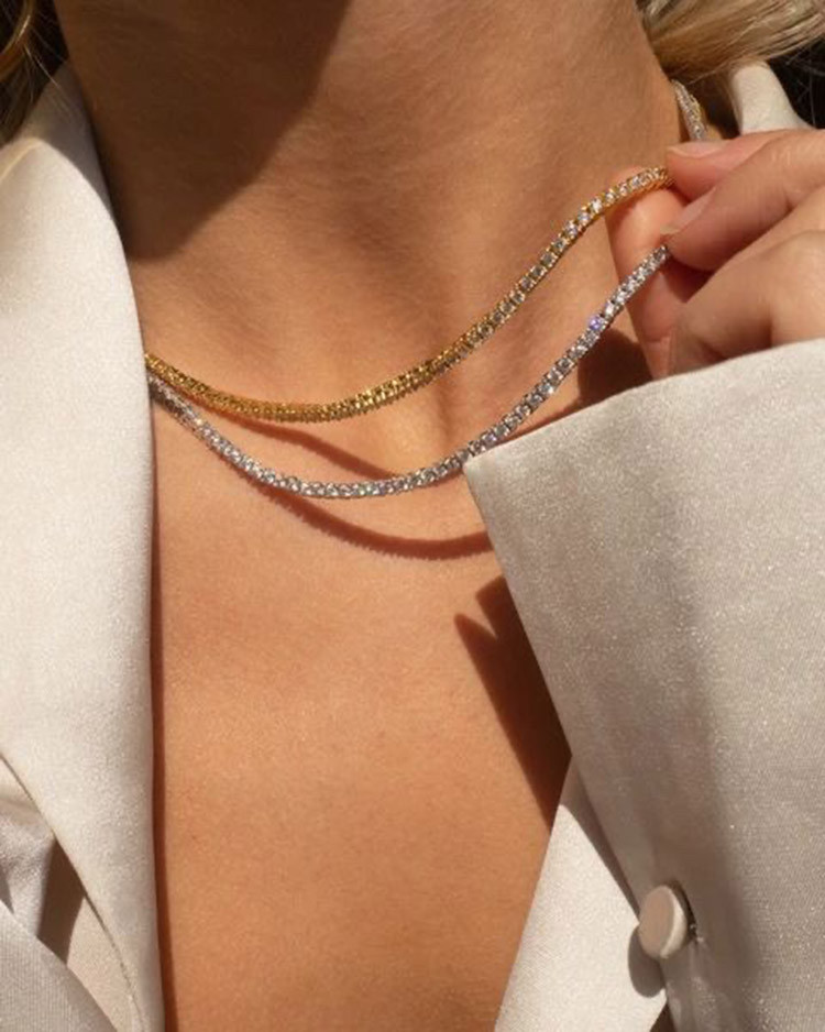 3MM 3프롱 라운드 테니스 목걸이 2Size 3Colors