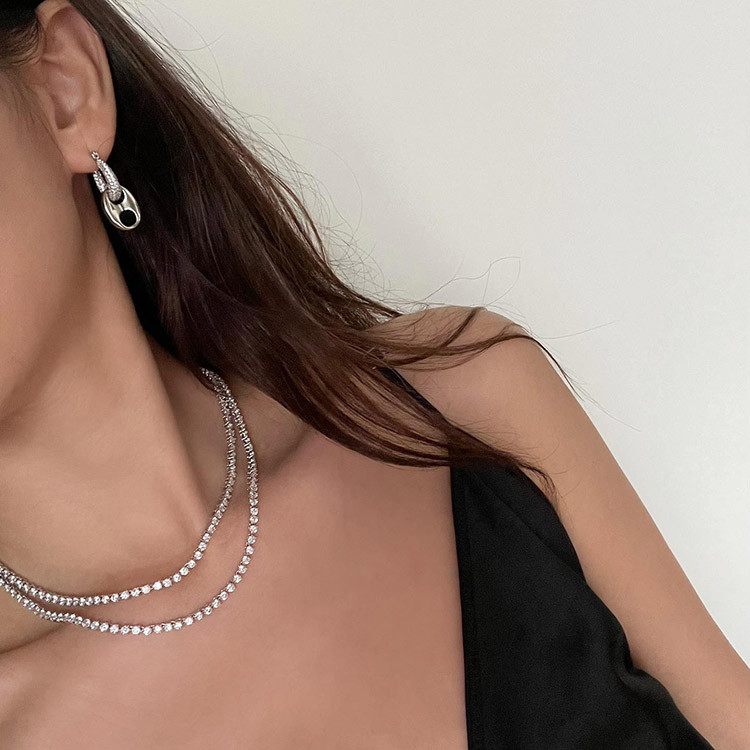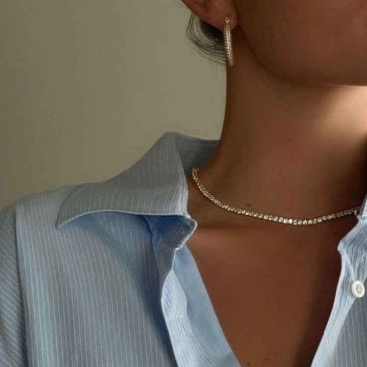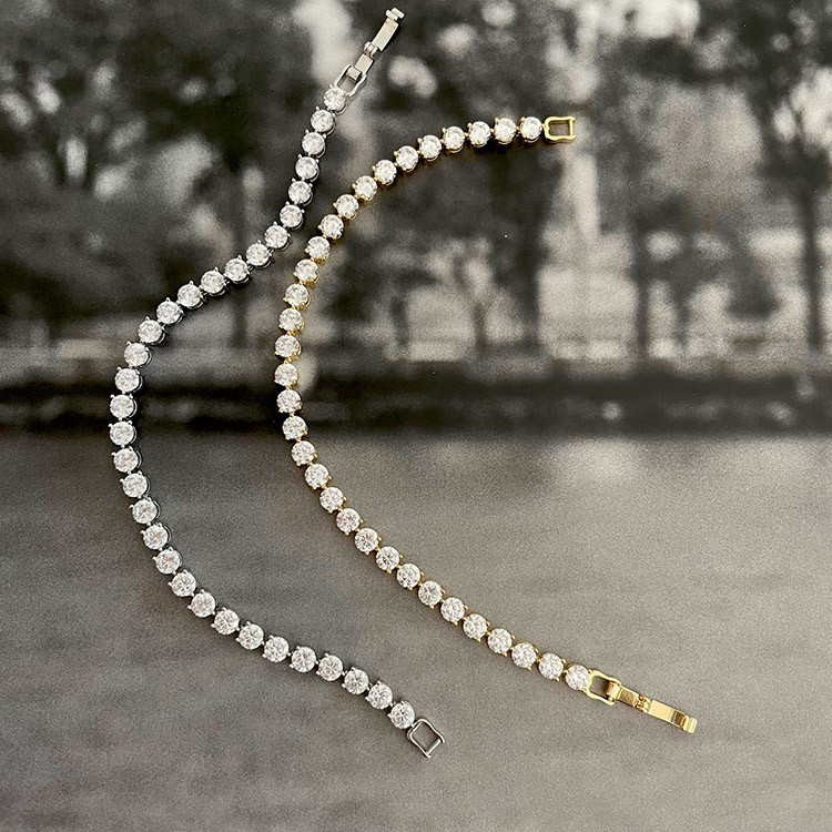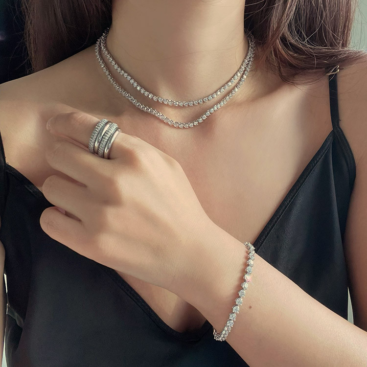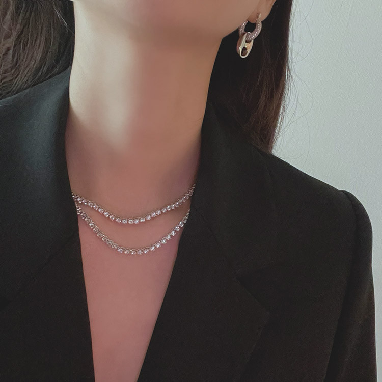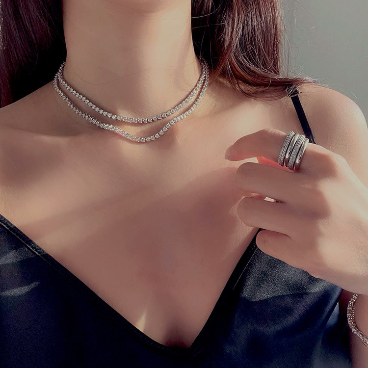 3미리 3프롱 라운드 테니스 초커 목걸이 실버 블랙 골드 큐빅 목걸이