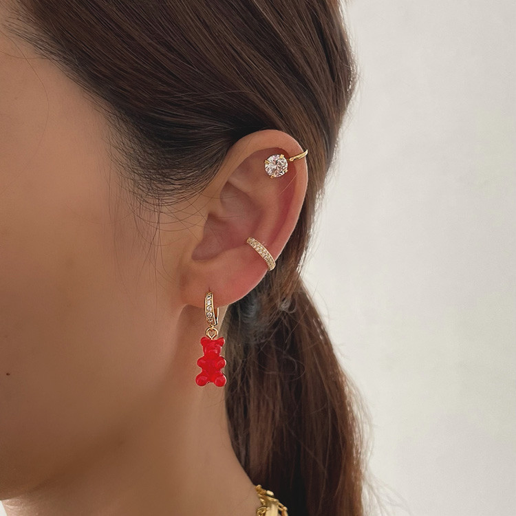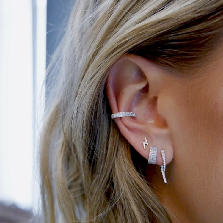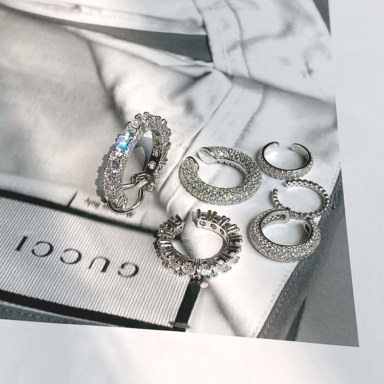 라운드 파베 큐빅 볼드 링 이어커프 3size
