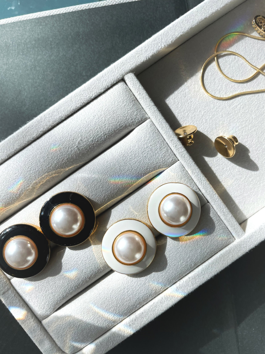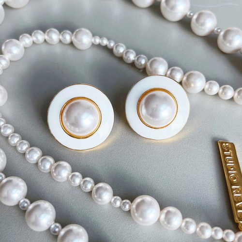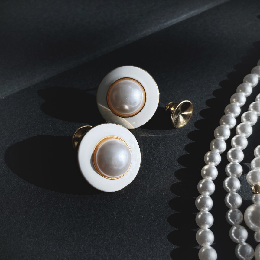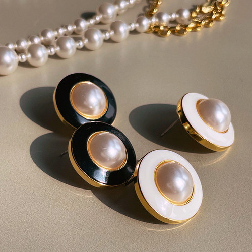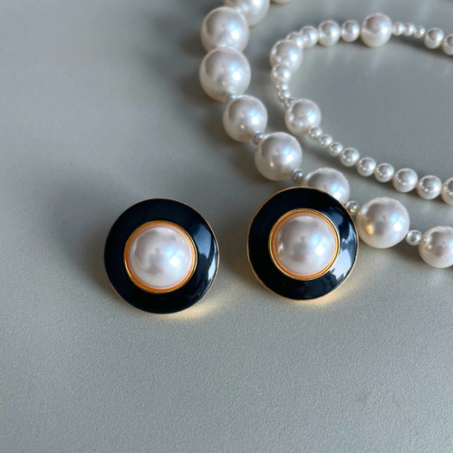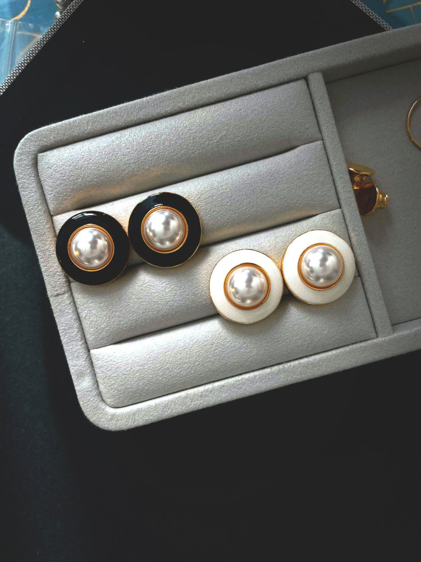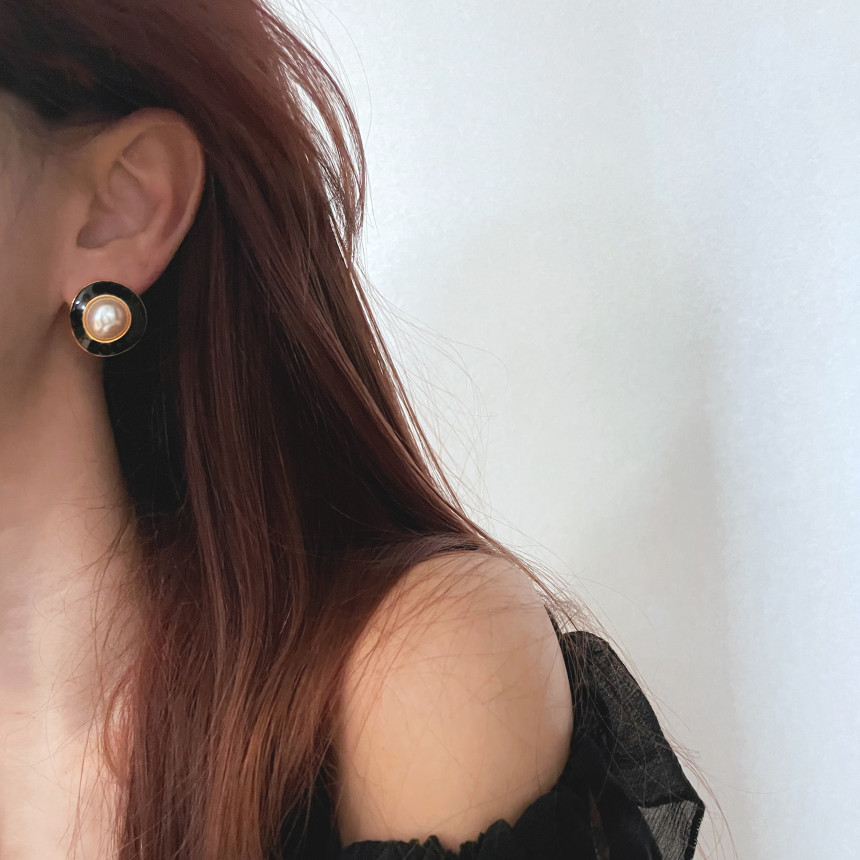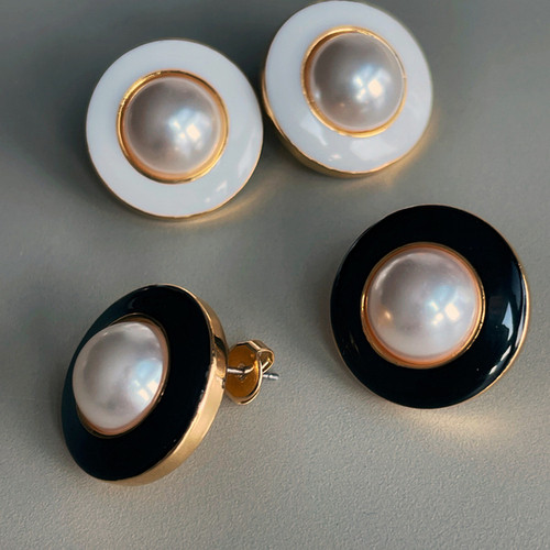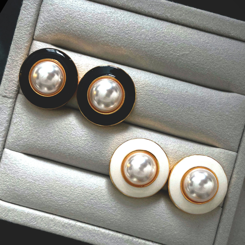 Vintage White Black Stud Pearl Earring 빈티지 화이트 블랙 단추 진주 귀걸이